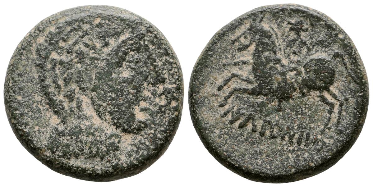 ICALCUSCEN. As. 120-20 a.C. Iniesta (Cuenca). A/ Cabeza masculina a derecha, detrás CNF, delante Q.R. R/ Jinete con lanza y rodela a izquierda, debajo ICaLCuSCeN. FAB-1415. Ae. 15,03g. MBC-.