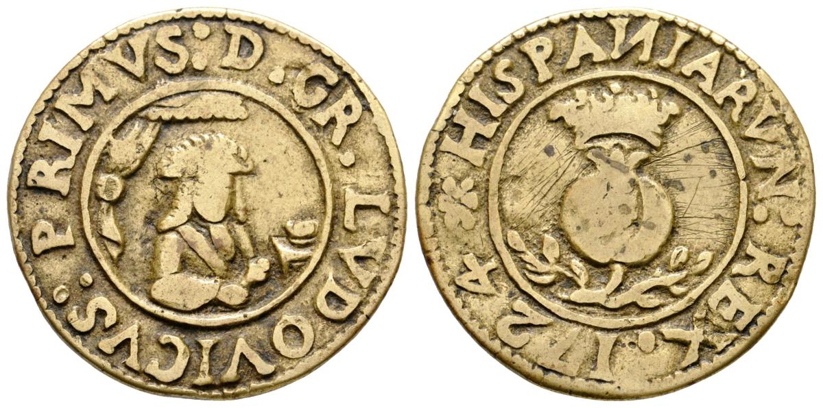 LUIS I. Medalla de proclamación. 1724. Granada. D.GR.LVDOVICVS:PRIMVS.-HISPANIARVN:REX. Ae. 6,54g. Fundida. MBC-.