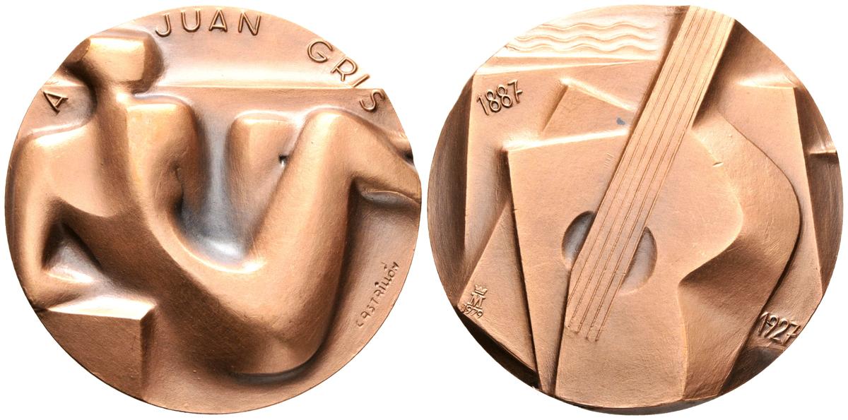MEDALLA (80 mm). FNMT dedicada al pintor Juan Gris, 1887-1927. Emitida en 1979. Autor Castrillón. Ae. SC.
