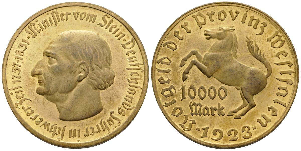 ALEMANIA. 10000 Marks. 1923. Westphalia. Jaeger N20a. Ae. 32,13g. SC-.