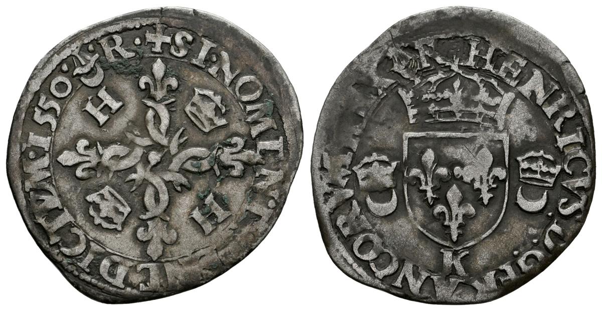 FRANCIA. Enrique II. Douzain aux croissants. 1550 K (Bordeaux). Dy.997; C.1305; L.835; Sb.4380. Ar. 2,39g. MBC.