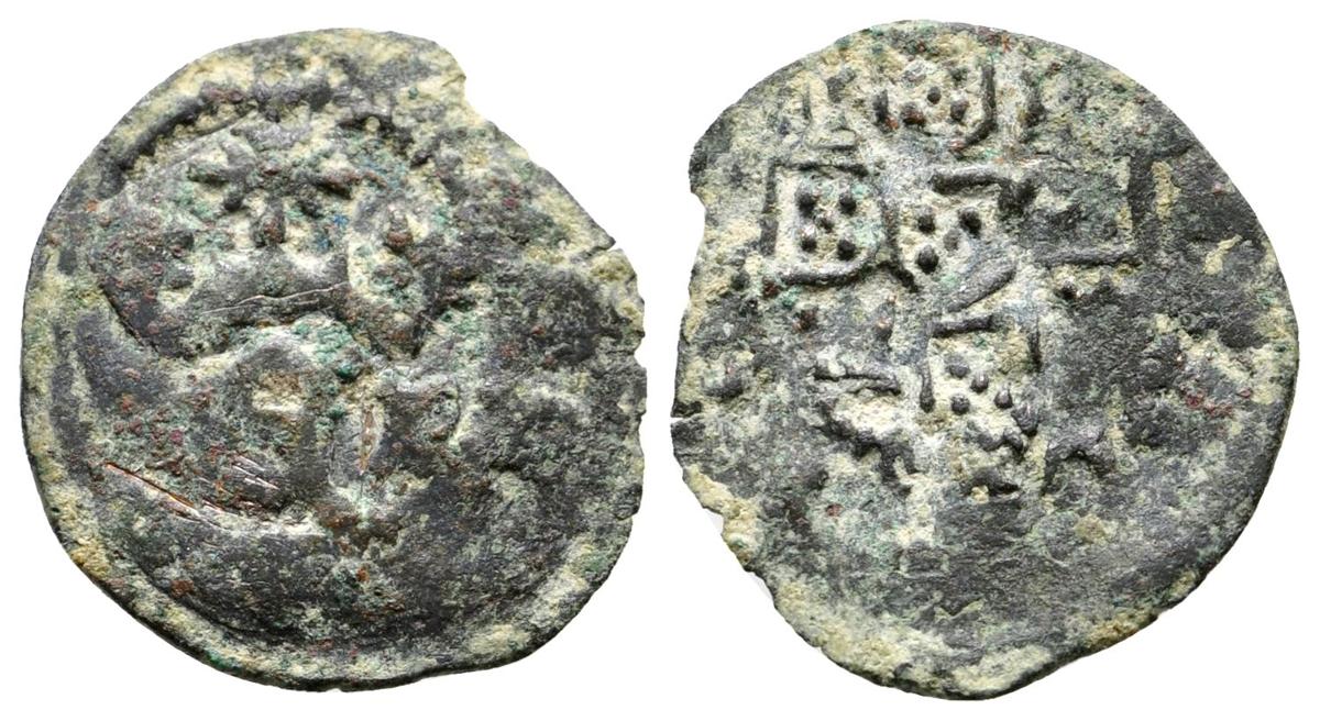 PORTUGAL. D. Duarte I. Medio Real preto. (1433-1438) Lisboa L. Gomes 01.02. Ae. 0,74g. BC+.