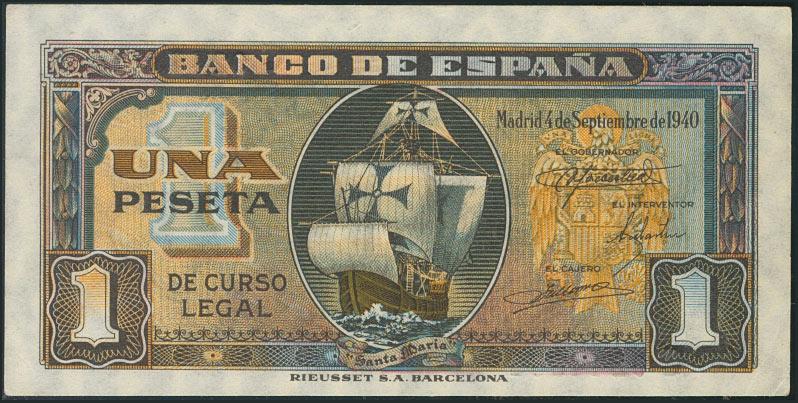 1 peseta. 4 de Septiembre de 1940. Serie C. (Edifil 2017: 442a). EBC.