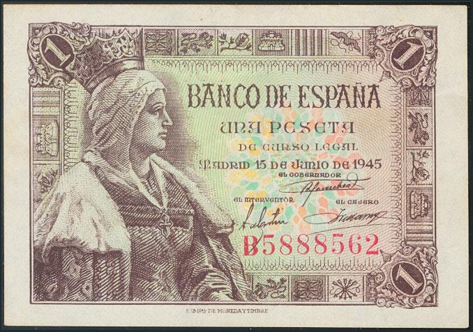 1 peseta. 15 de Junio de 1945. Serie B. (Edifil 2017: 448a). SC-.