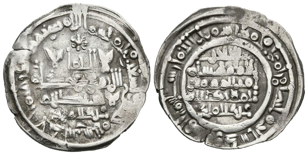 CALIFATO DE CORDOBA. Hisham II. Dirham. 395 H. Al-Andalus. Citando a Abd-Al-Malik en la IA y Al-Hayib / Abd-Al-Malik en la IIA. Vives 581. Ar. 3,27g. MBC.