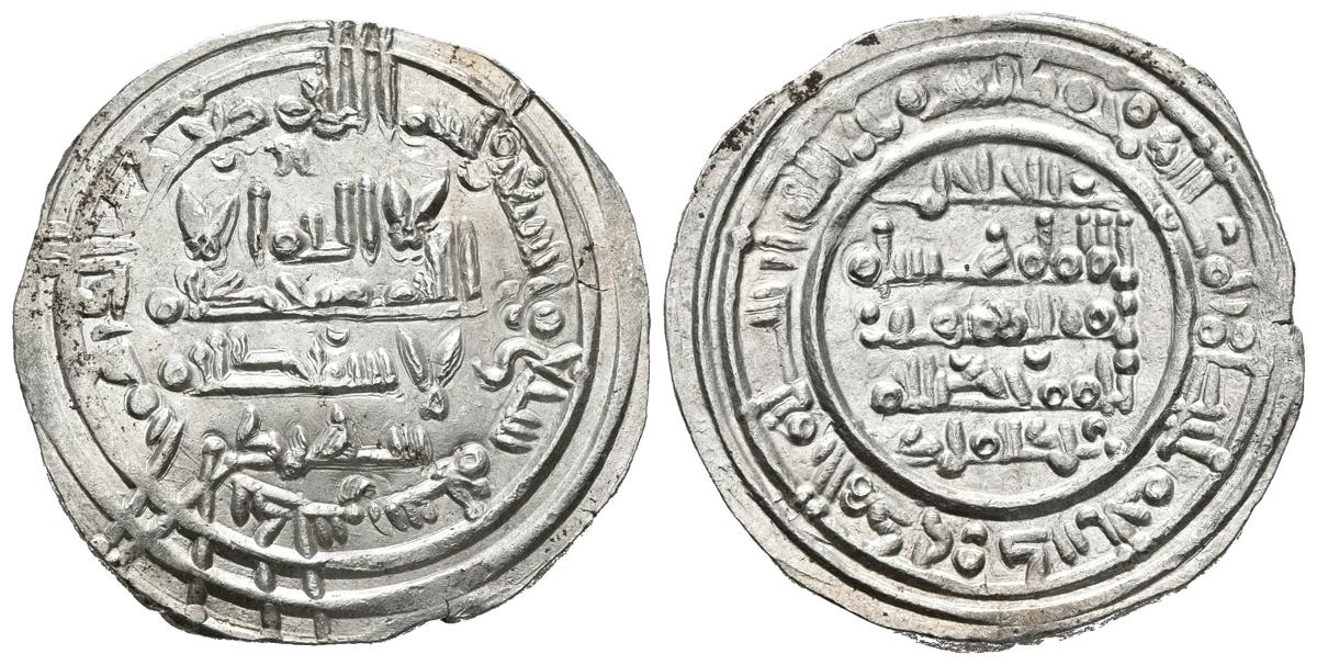 CALIFATO DE CORDOBA. Hisham II. Dirham. 397 H. Al-Andalus. Citando a Suhaid en la IA y Al-Hayib/´Abd Al-Malik en la IIA. Vives 590. Ar. 3,79g. Buen ejemplar. Inusual módulo mayor a lo habitual. EBC.