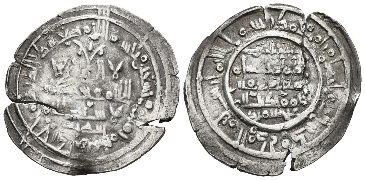CALIFATO DE CORDOBA. Hisham II. Dirham. 398 H. Al-Andalus. Citando a Suhaid en la IA y Al-Hayib/Abd-Al-Malik en la IIA. Vives 592. Ar. 2,85g. Cospel abierto. MBC.