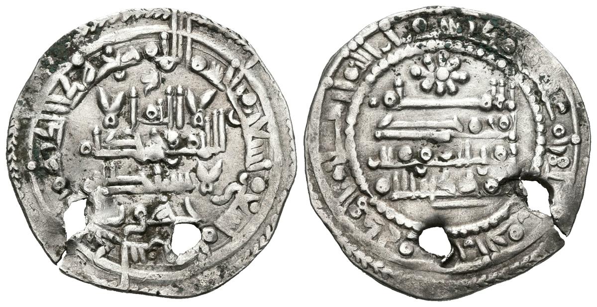 CALIFATO DE CORDOBA. Muhammad II. Dirham. 399 H. Al-Andalus. Citando a Yahwar en la IA. Vives 682; Prieto 2. Ar. 2,16g. Dos perforaciones. MBC+.