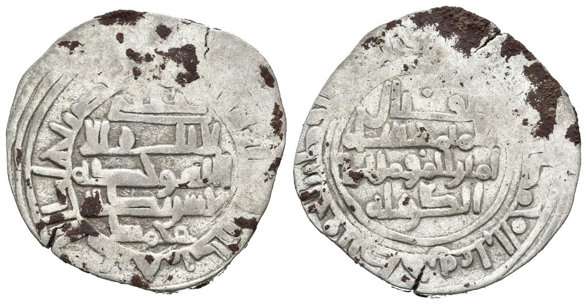 TAIFA DE DENIA. 'Ali Iqbal al-Dawla. Dirham. ¿443 H?. Daniya (Denia). Vives 1311; Prieto 210; Cru. 1439. Ar. 3,61g. Depósitos. MBC+. Muy rara.