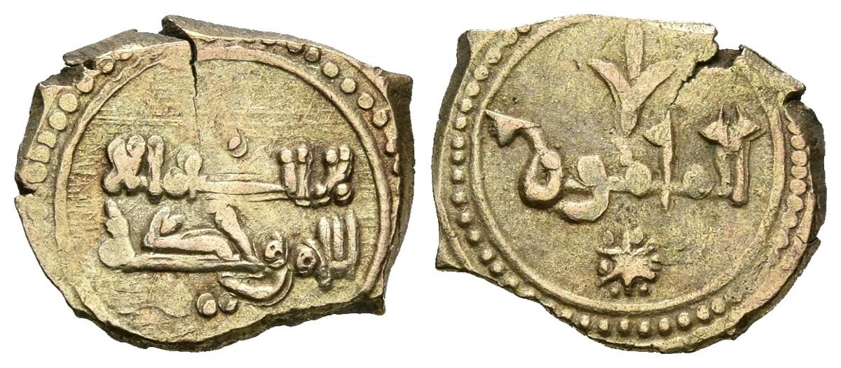 TAIFA DE TOLEDO Y VALENCIA. Yahya Al-Ma´mun. Fracción de dinar. 435-467 H. Variante de decoración con estrella de seis puntas decorada con puntos. Vives 1100; Prieto 335. Au. 1,09g. MBC. Escasa.