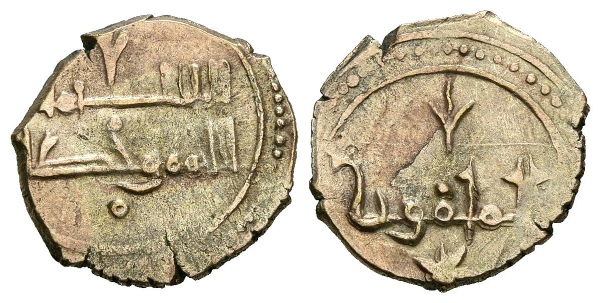TAIFA DE TOLEDO Y VALENCIA. Yahya Al-Ma´mun. Fracción de dinar. 435-467 H. Vives 1100; Prieto 335. Au. 0,86g. MBC+.