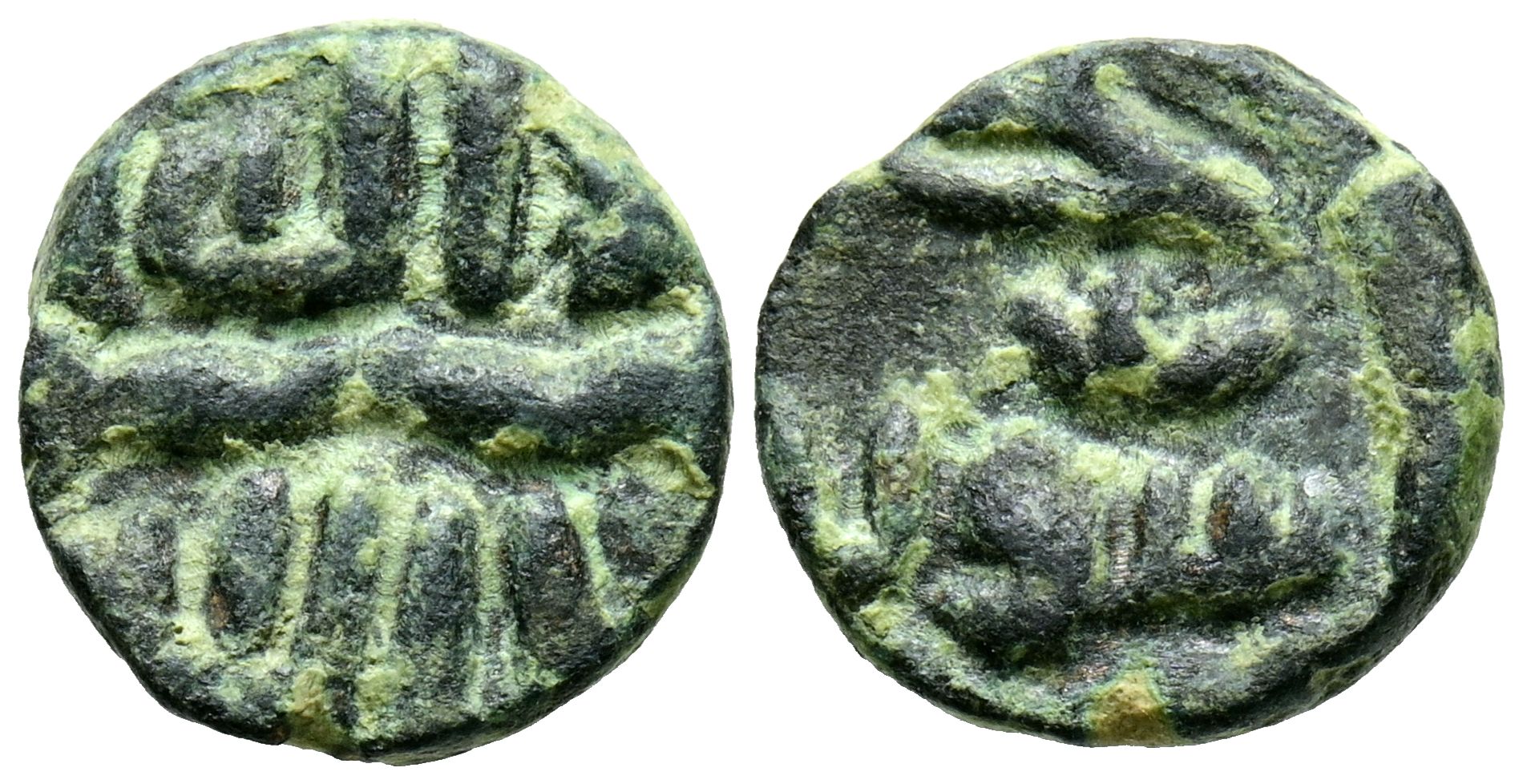 DEPENDENT EMIRATE OF CÓRDOBA, PERIOD OF GOVERNORS. Anonymous. Felus. (Ae. 2.02g/13mm). S/D. (Frochoso II-e). Anv: لاالله/ لااله ا with serpentine ornaments. Rev: رسواالله / محمد, with tulip ornament. Good Very Fine. Exemplary attractiveness.