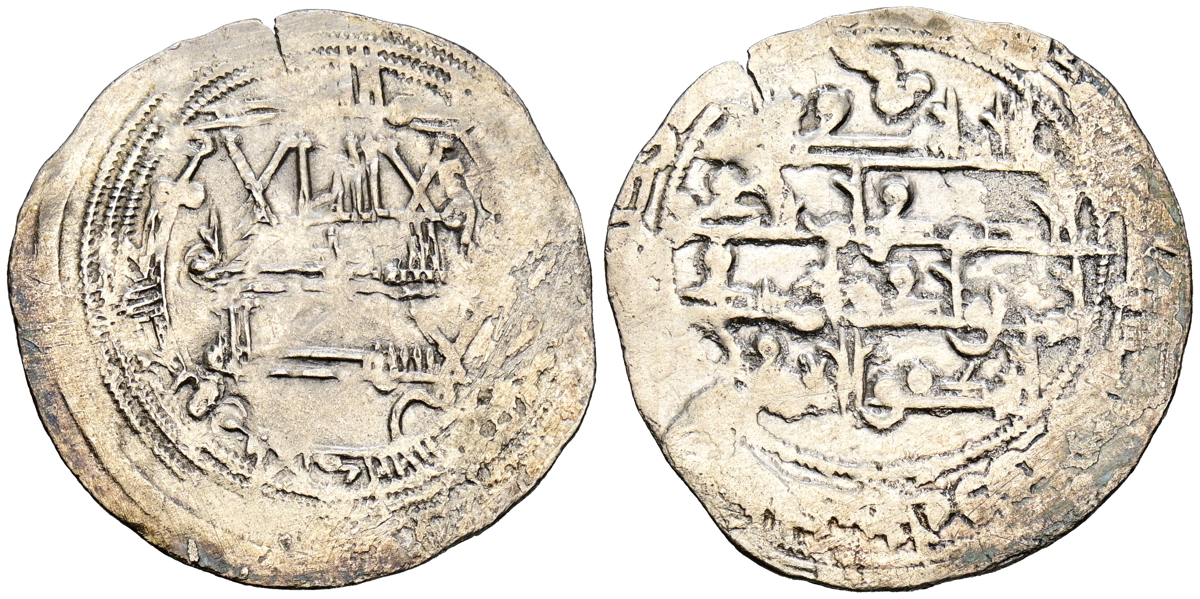 INDEPENDENT EMIRATE OF CÓRDOBA, Muhammad I. (Ar. 2.64g/30mm). Date not visible, in the style of the coins of 260 and 265 AH. (Vives 308). VF-/VF+.