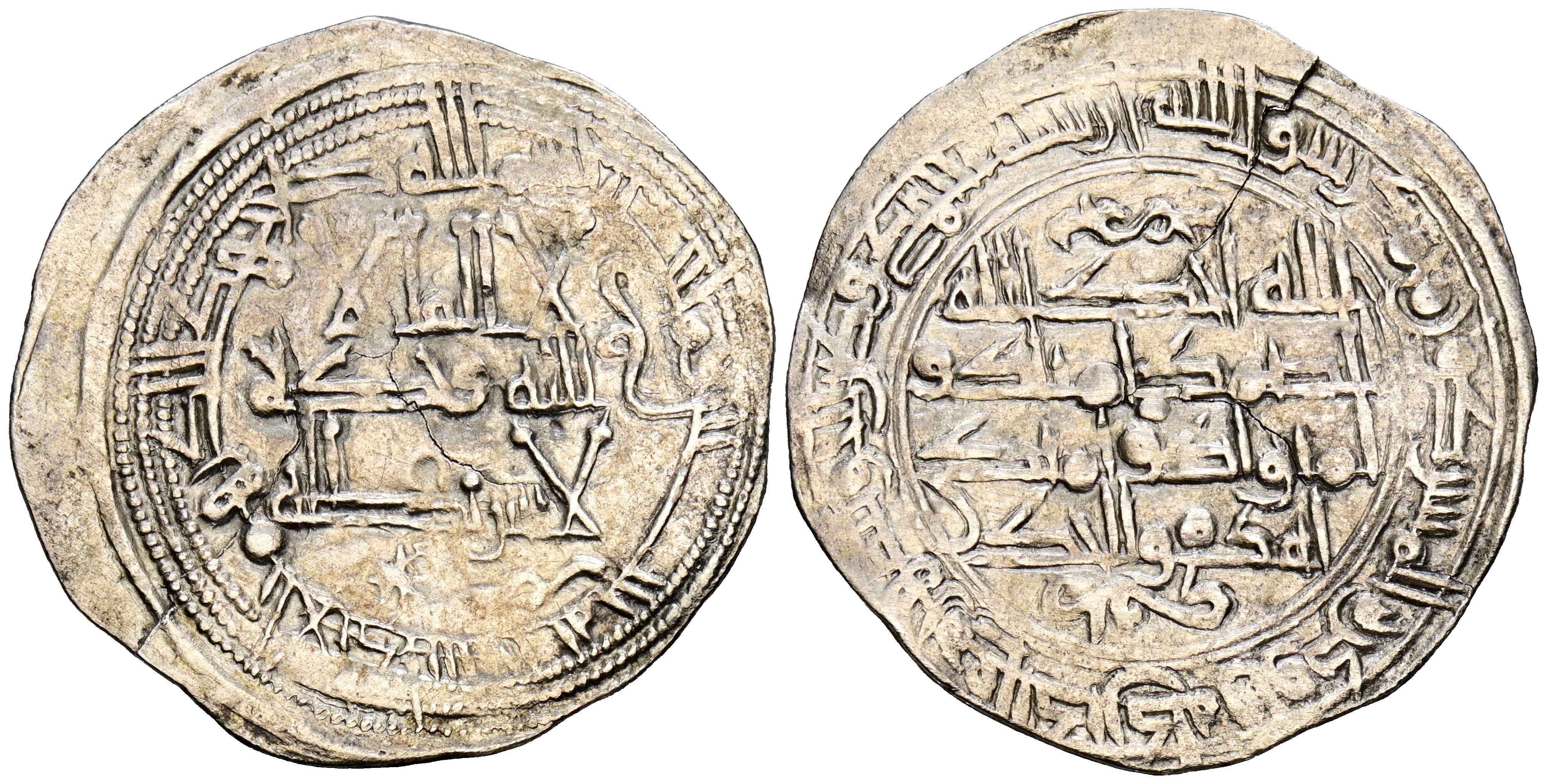 INDEPENDENT EMIRATE OF CÓRDOBA. Muhammad I. Dirham. (Ar. 2.23g/29mm). 260H. al-Andalus / الاندلس. (Vives 282; Frochoso 260.40). Very Fine. Crack.