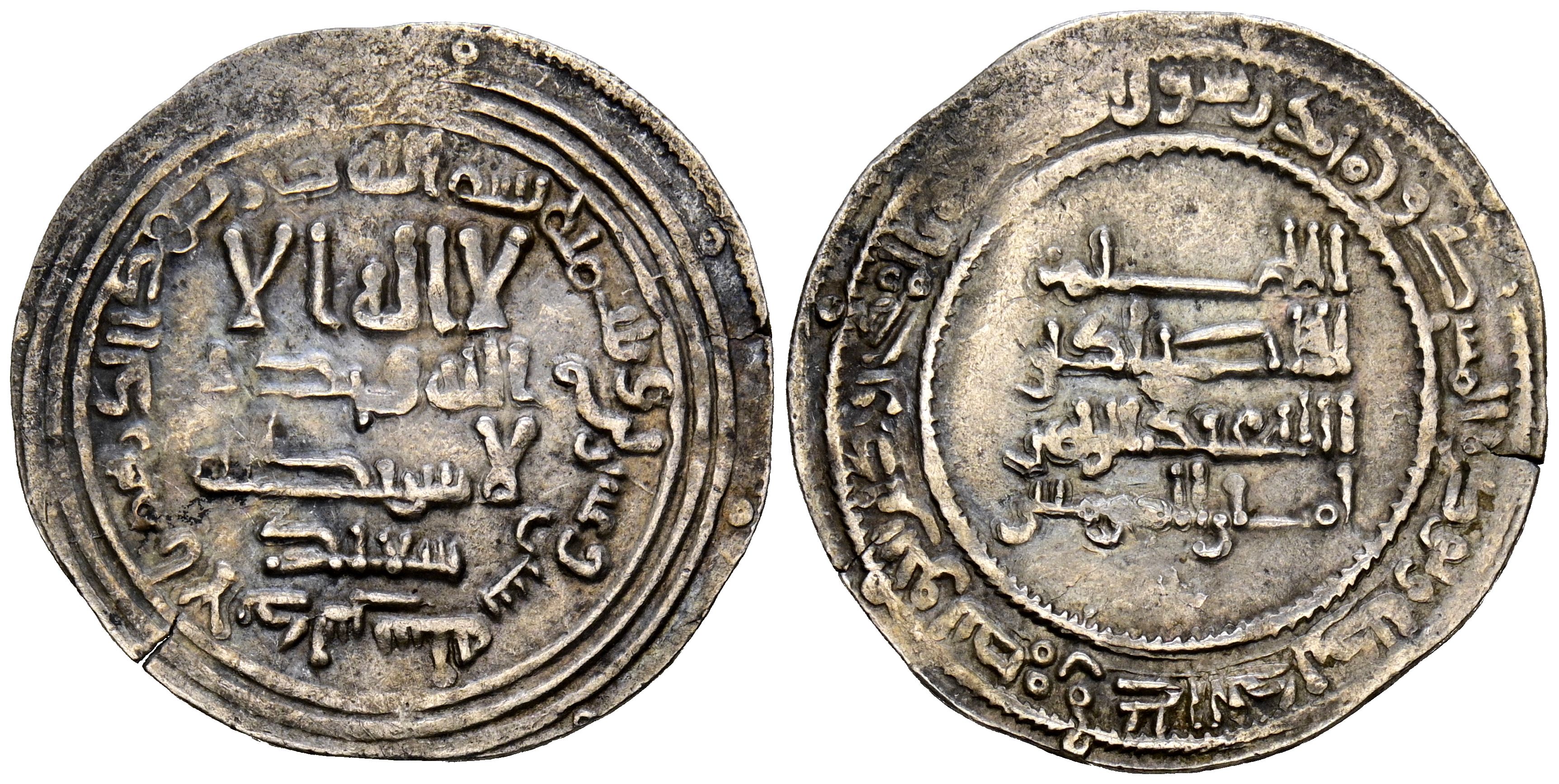 CALIPHATE OF CORDOBA, Abd al-Rahman III. Dirham. (Ar. 2.52g/24mm). 322H. al-Andalus. (Vives 383; Frochoso 322.8, group 1). Citing Ša'īd / سعيد in IA. Without circular intaglio, bearing the Profession of Faith. VF+. Scarce, and this variant even more so.