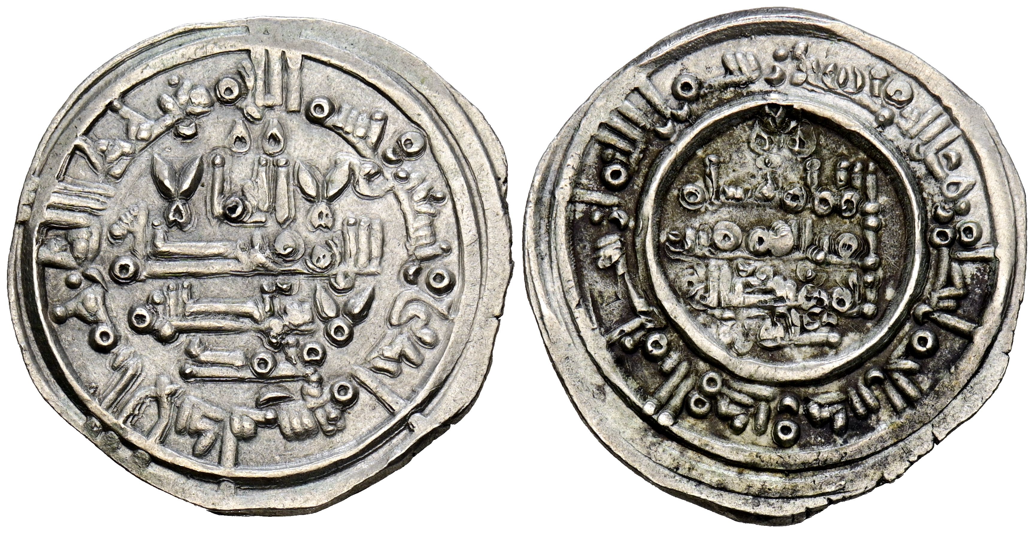 CALIPHATE OF CORDOBA, Hisham II. Dirham. (Ar. 3.20g/25mm). 391H. al-Andalus / الاندلس. (Vives 549; Frochoso 391.49). Quoting Muhammad/محمد on AI. and 'Āmir/عامر in the IIA. Extremely Fine-. Good specimen.