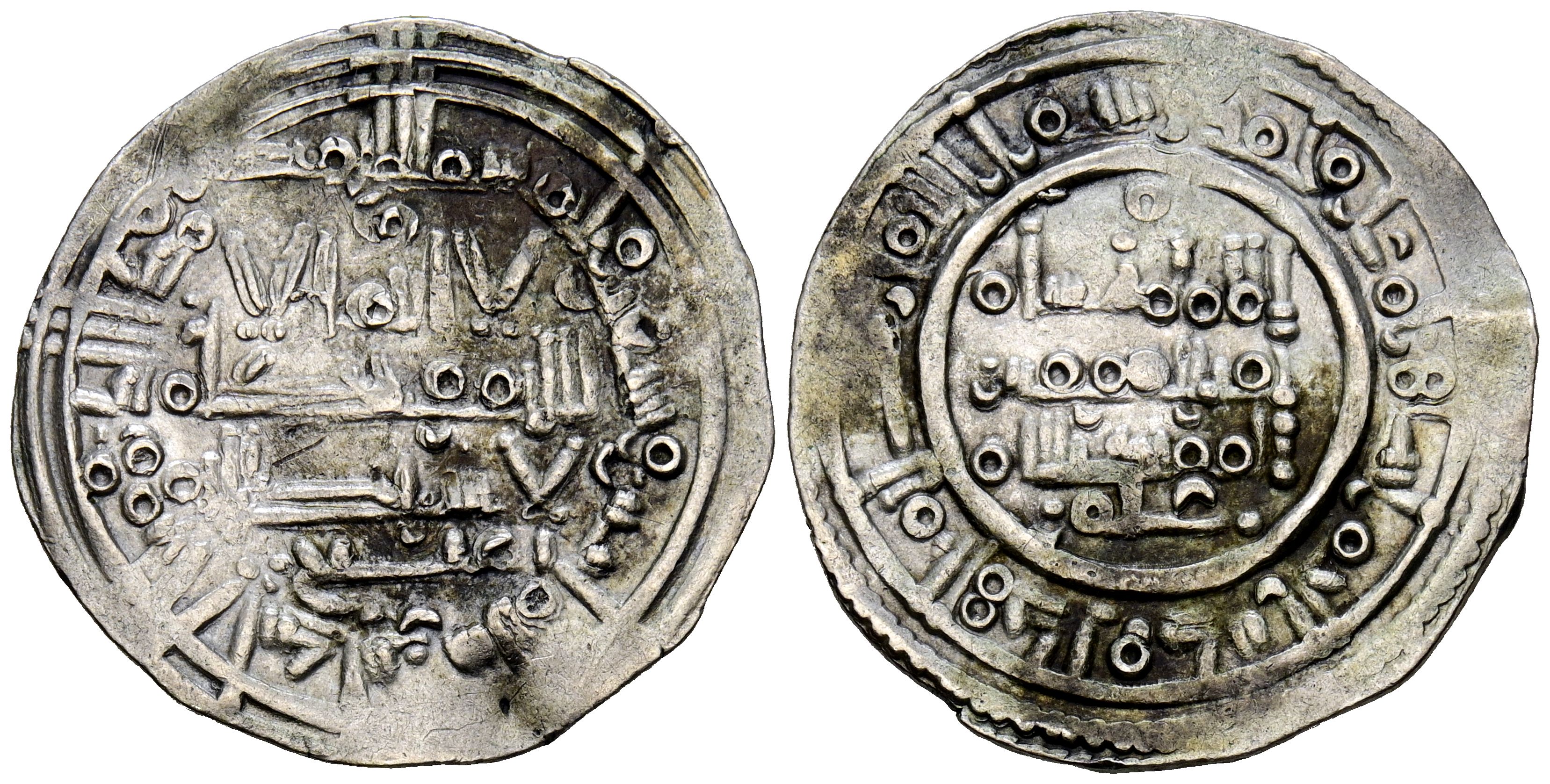 CALIPHATE OF CÓRDOBA, Hisham II. Dirham. (Ar. 2.56g/23mm). 392H. al-Andalus / الاندلس. (Vives 569; Frochoso 392.66). Quoting Tamliŷ / تمليح in IA. and 'Āmir/عامر in IIA. Very Fine.