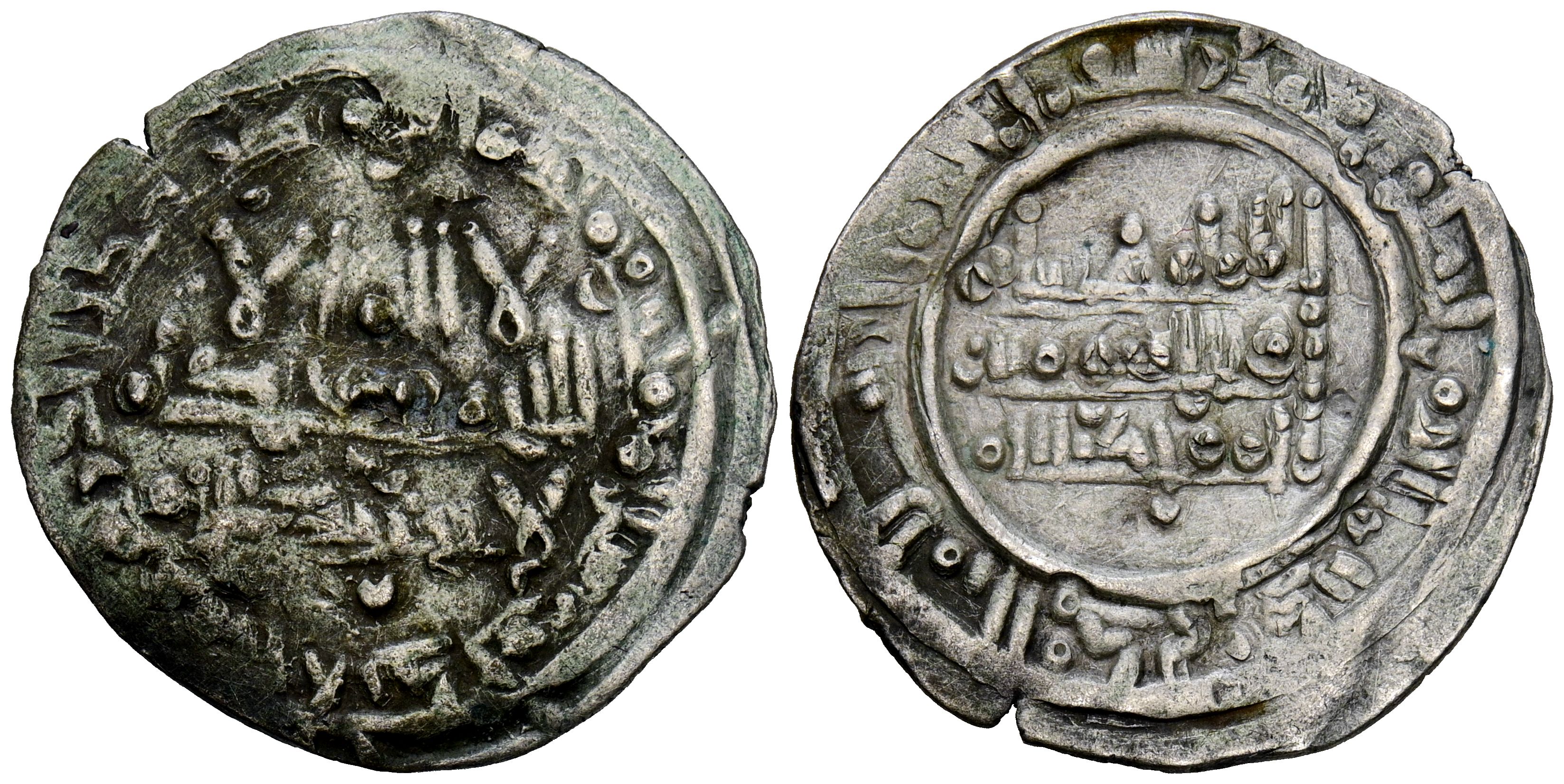 CALIPHATE OF CORDOBA, Hisham II. Dirham. (Ar. 2.48g/25mm). 388H. al-Andalus / Al-Andalus. (Vives 596). No names in any of its areas. VF. Very rare. The absence of the obligatory "Amir" in the IIA and the mint master in the IA, as well as their peculiar African-style design, have raised many doubts about the true origin of these coins, despite their clearly Al-Andalus mint. Researcher David Francés Baños, in his monograph on Fez and African coins published in Manquso No. 13 (pp. 27-31), suggests an interesting hypothesis that would place the minting of these coins in the vicinity of the city of Tlemcen, under exceptional circumstances perfectly documented in the chronicles of the period.