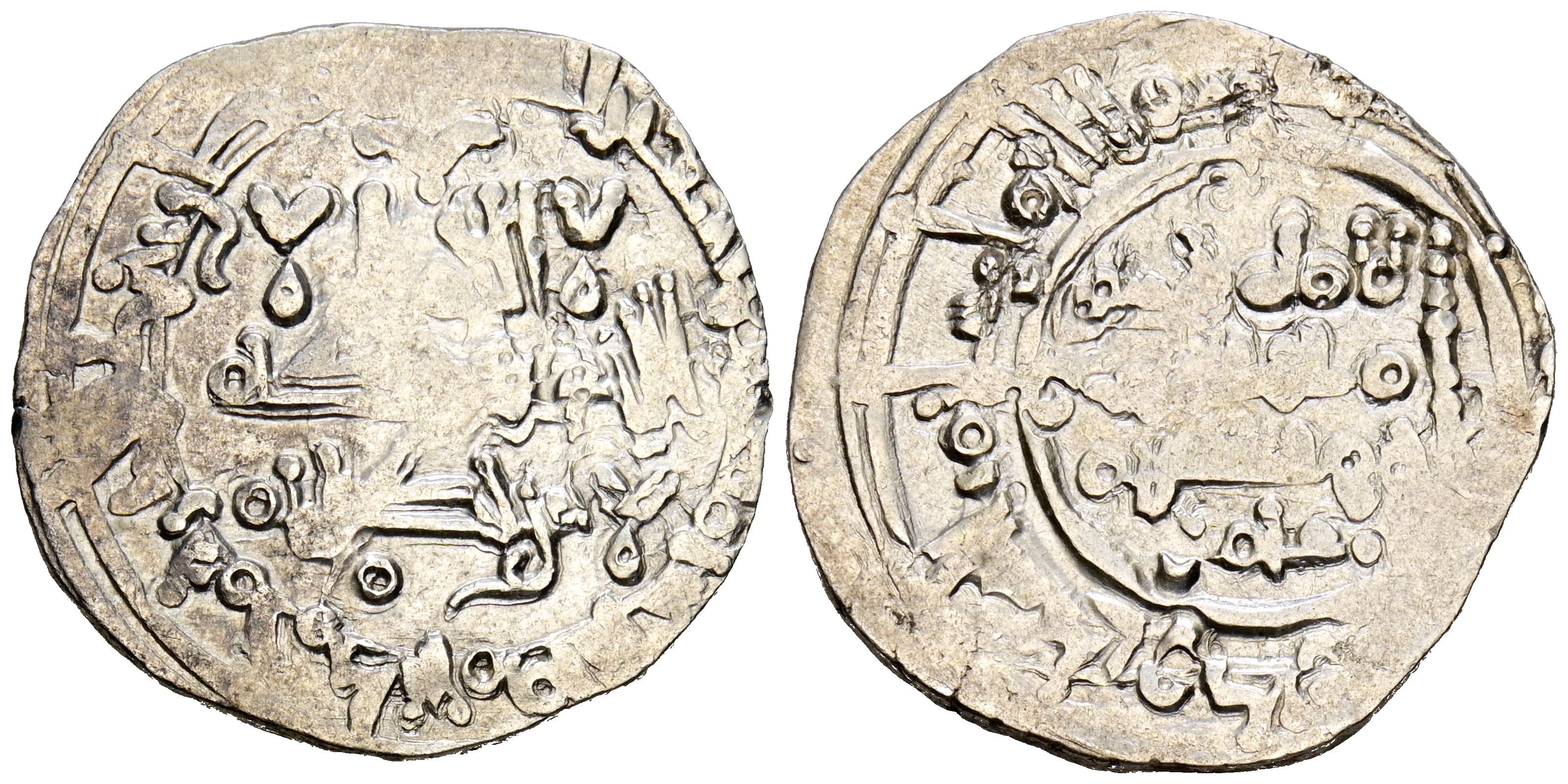 English CALIPHATE OF CORDOBA, Hisham II. Dirham. (Ar. 3.71g/23mm). 392H. Madinat Fas (Fez) / مدينة فاس. (You live 615var). Quoting 'Āmir/عامر in IIA. Very Fine. Beautiful and rare specimen.