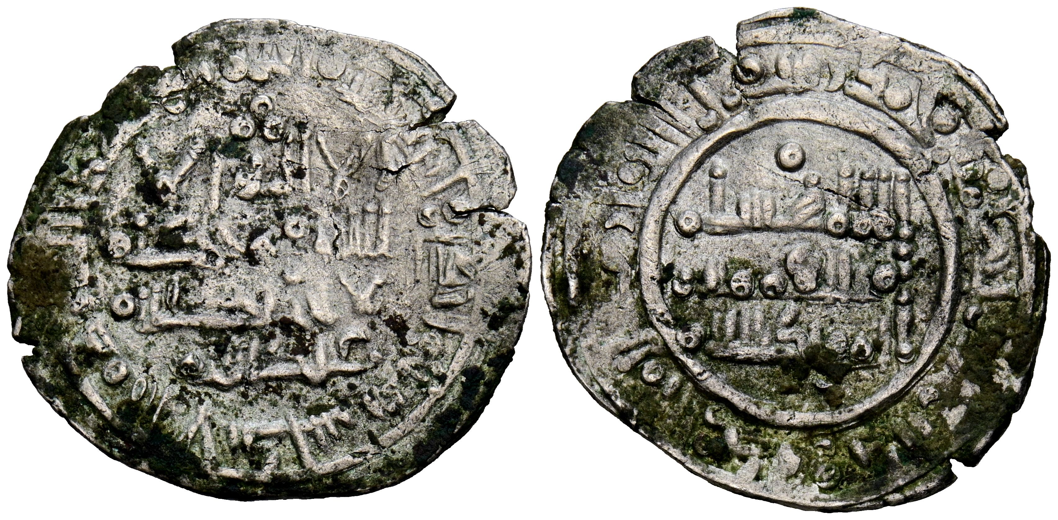 CALIPHATE OF CORDOBA, Hisham II. Dirham. (Ar. 2.81g/24mm). 401H. al-Andalus / الاندلس. (Vives 701; Frochoso 401.89). Quoting 'Abd Allāh / عبداللة in IA. Very Fine-. Loose coinage on obverse and oxidations.