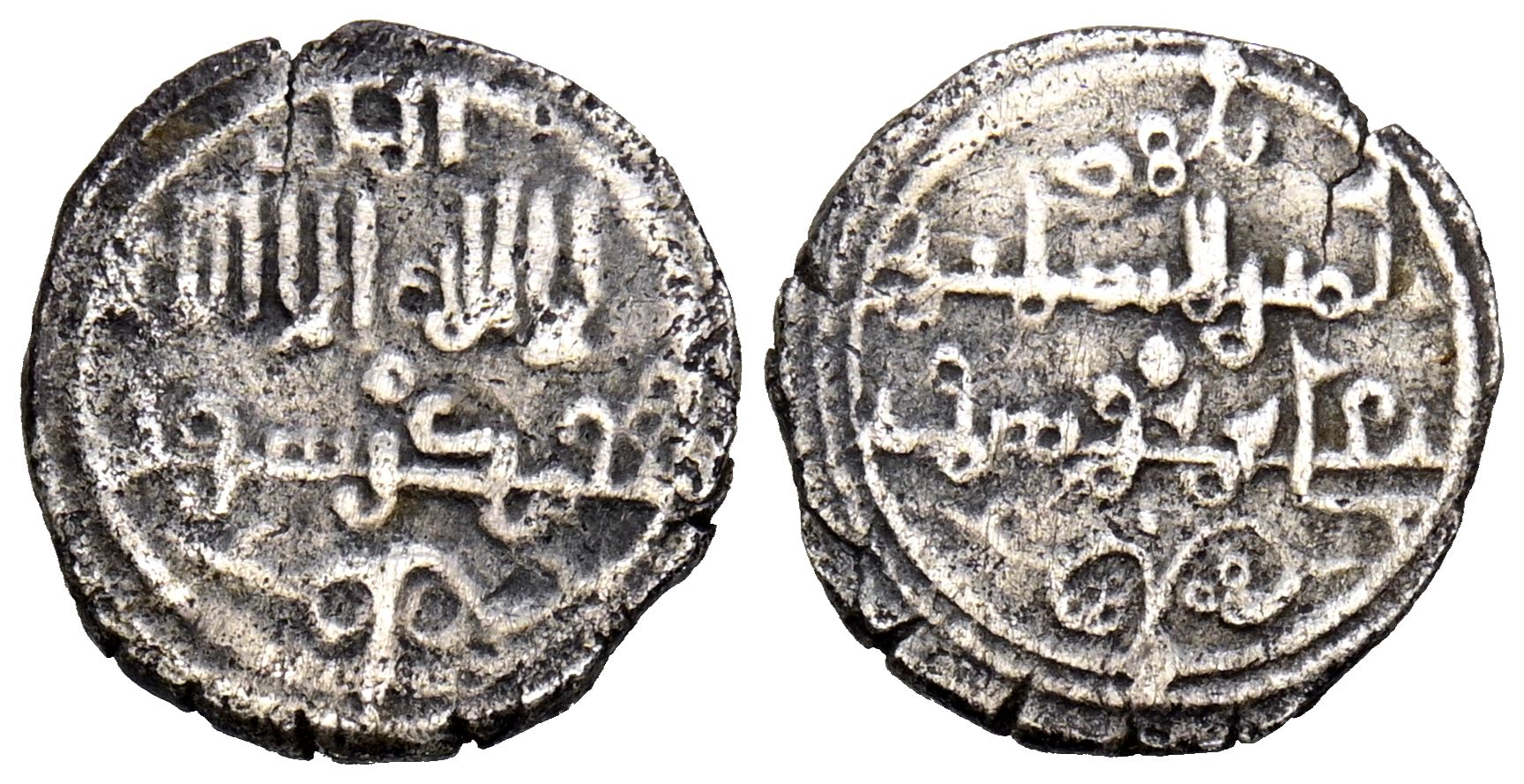English ALMORAVIDES, Ali ben Yusuf (500-537H). Get rid of yourself. (Ar. 0.90g/12mm). S/D. (Vives 1703; Hazard 929; Benito Cb30). Anv: 'Shahada' in two lines, above: الله. Rev: Ali is presented with the title of Amir al-Muslimin, without heir. Very Fine. Scarce.