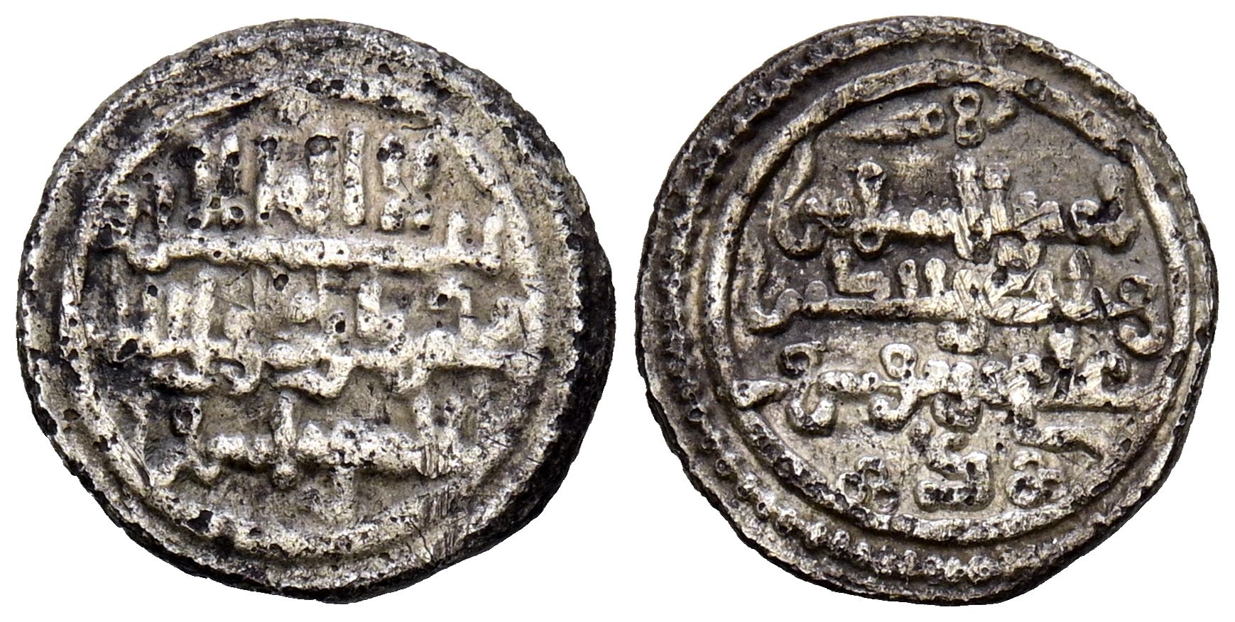 ALMORAVIDS, Ali ben Yusuf and the Amir Tashfin (533-537H). Quirate. (Ar. 0.94g/12mm). S/D. (Vives 1824; Benito Cj3). Obverse: 'Shahadah' in three lines, below quoting the heir Tashufin. Rev: Divided into three lines, it presents Ali with the titles of Amir al-Muslimin and Nasir al-Din. VF-/VF.
