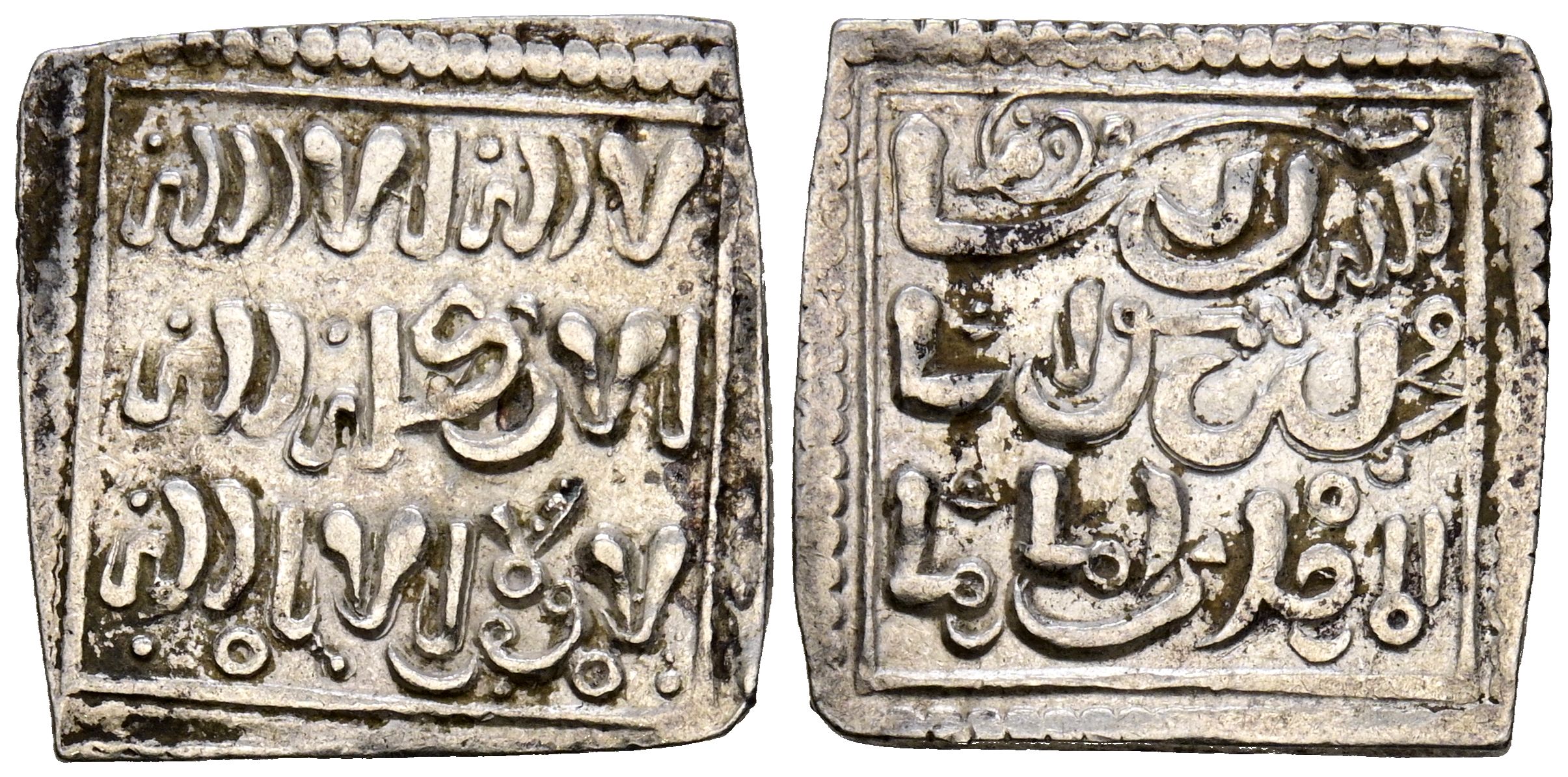 English PILLOWS. Thousands. (Ar. 1.44g/17mm). 13th century. Christian imitation of an Almohad dirham in the name of Al-Mahdi. (Medina 201-bis; Hohertz 651). Good Very Fine.