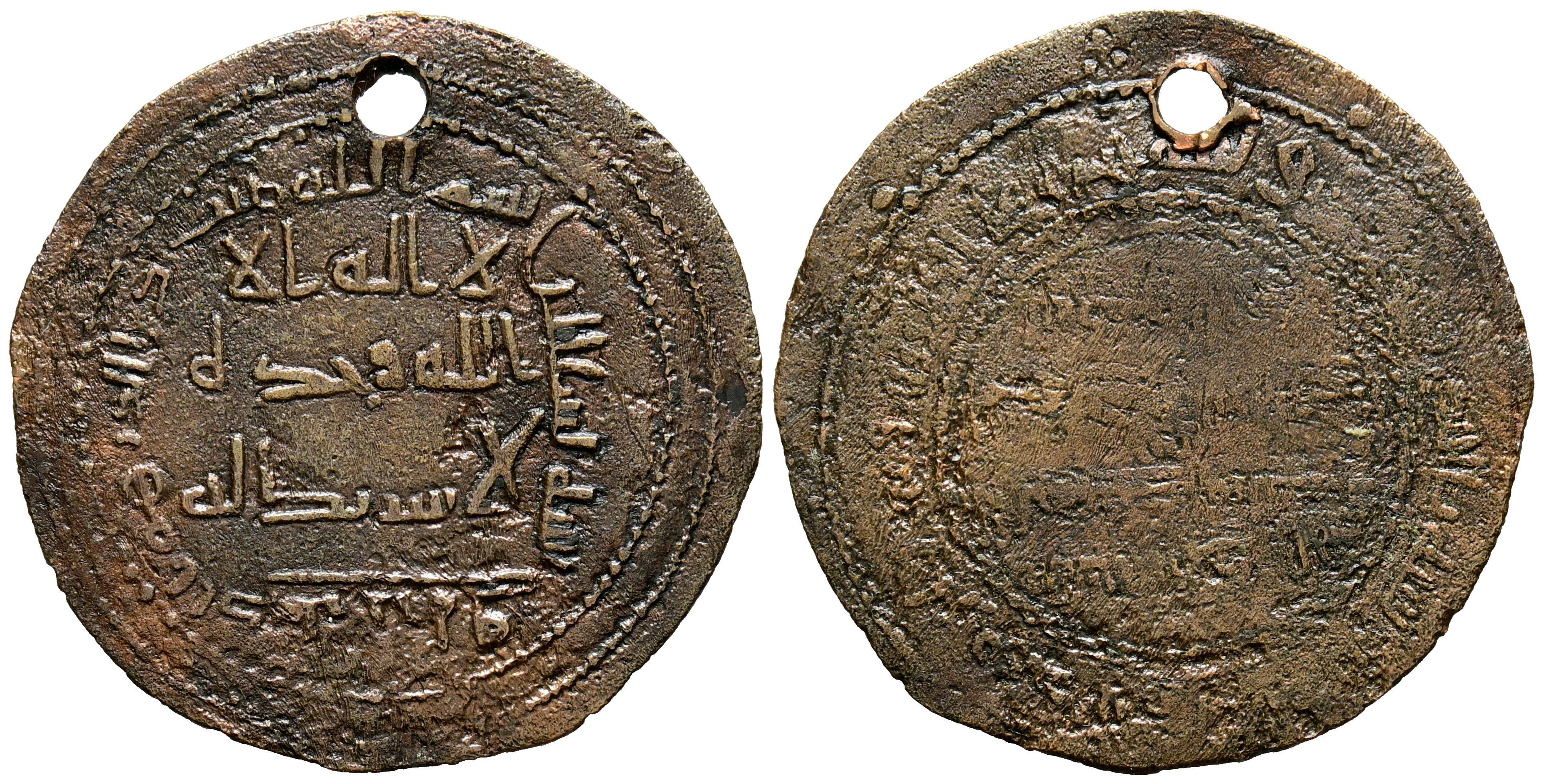 UMAYA CALIPHATE OF DAMAUncirculatedUS, Al-Walid ibn 'Abd al-Malik. Period counterfeit dirham. (Ae. 2.00g/27mm). 90H. Wasit/Wasit? VF/Fine. Perforation. Very interesting and rare counterfeit with no signs of silver plating.