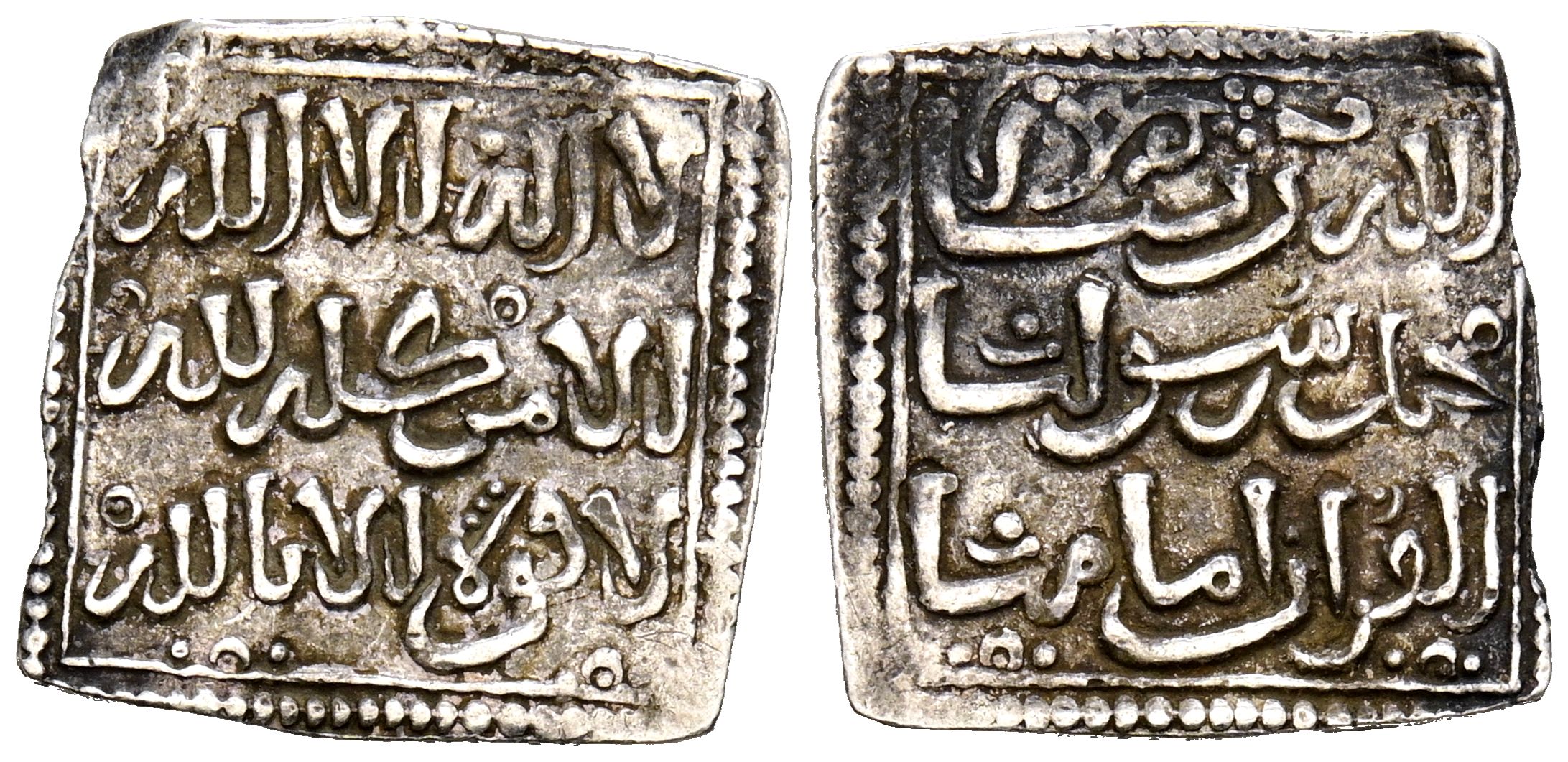 ANTI-ALMOHADS MERINIDS, Anonymous. Dirham. (Ar. 0.90g/14mm). S/D. (Hohertz 835; Medina 205). In the last line of IIA, instead of Al-Mahdi, appears the mention of the Quran: القران امامنا ('The Quran is our Imam'). VF. Scarce.