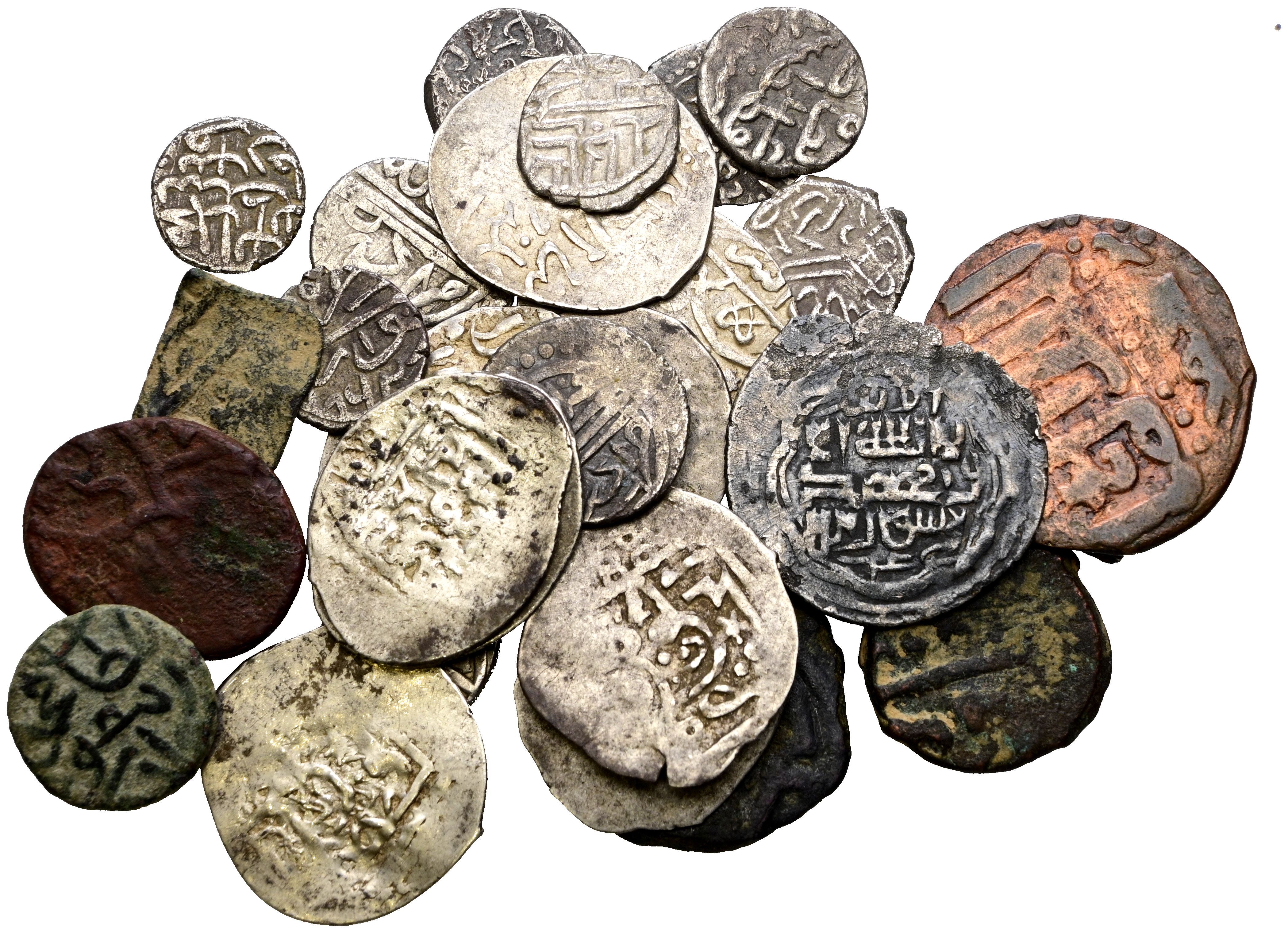 Interesting set of 29 coins from different empires, kingdoms, and sultanates. The vast majority of these coins are silver. They range in age, size, and condition. Worth examining.