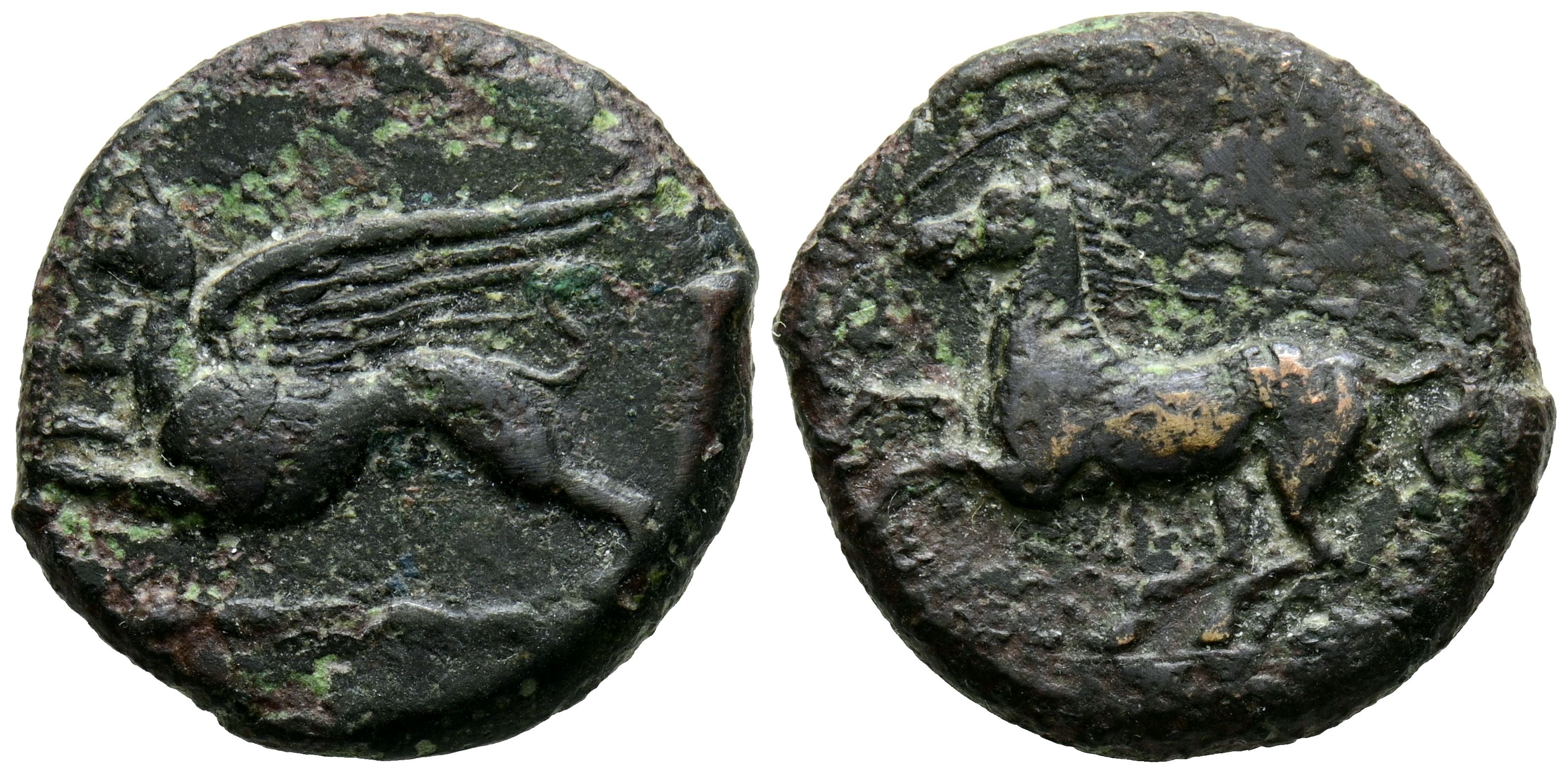 SICILY, Kainon. Ae23. (Ae. 8.86g/23mm). 360-340 Fine (SNG ANS 1169-74; HGC 2, 509). Anv: Griffin flying to the left. Rev: Horse to the right. Very Fine.