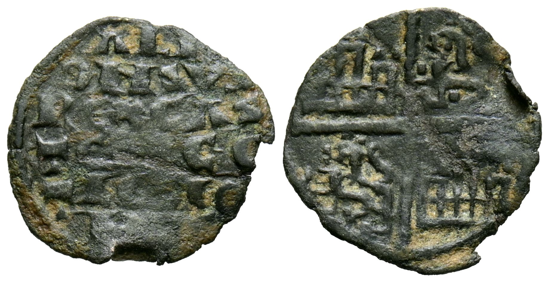 English ALFONSO X (1252-1284). Alfonsine coin "of the First Granada War". (Ve. 0.31g/13mm). No mint mark. (Imperatrix A10:4.27; FAB-247). Obv: Legend in six lines: ALF/ONSVS/REX CAS/TELLE E/T LEGIO/NIS. Rev: Castles and lions. VF. Fold mark on reverse.