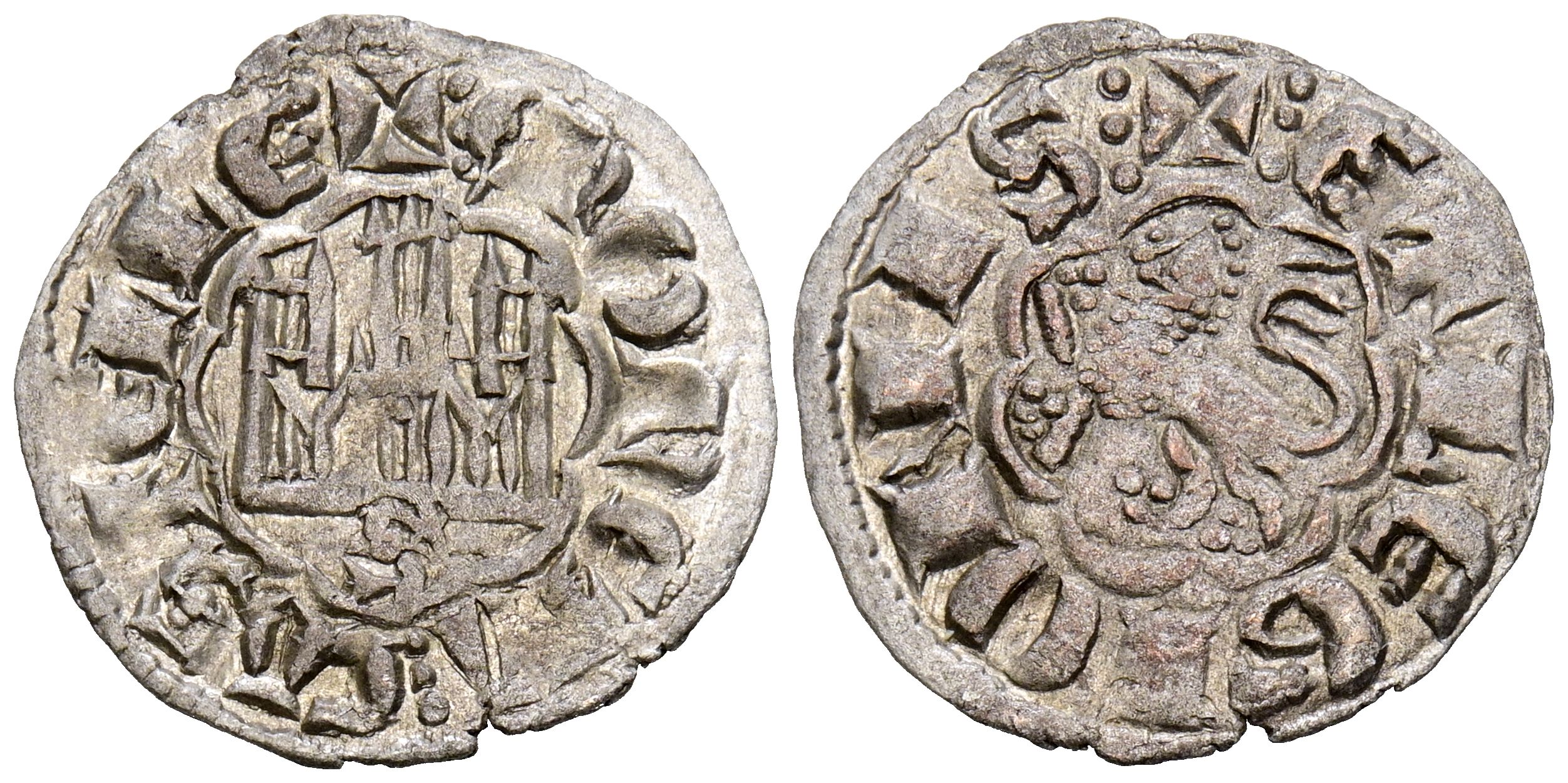 English ALFONSO X (1252-1284). Blanca Alfonsí (from the 2nd Granada War). (Ve. 0.77g/18mm). Seville. (Imperatrix A10:11.31; FAB-269, like Novén). Obv: Castle, below S, all within lobed beading, around legend: MONETA CASTELLE. Rev: Lion rampant to the left within lobed beading, around legend: ET LEGIONIS. VF+.