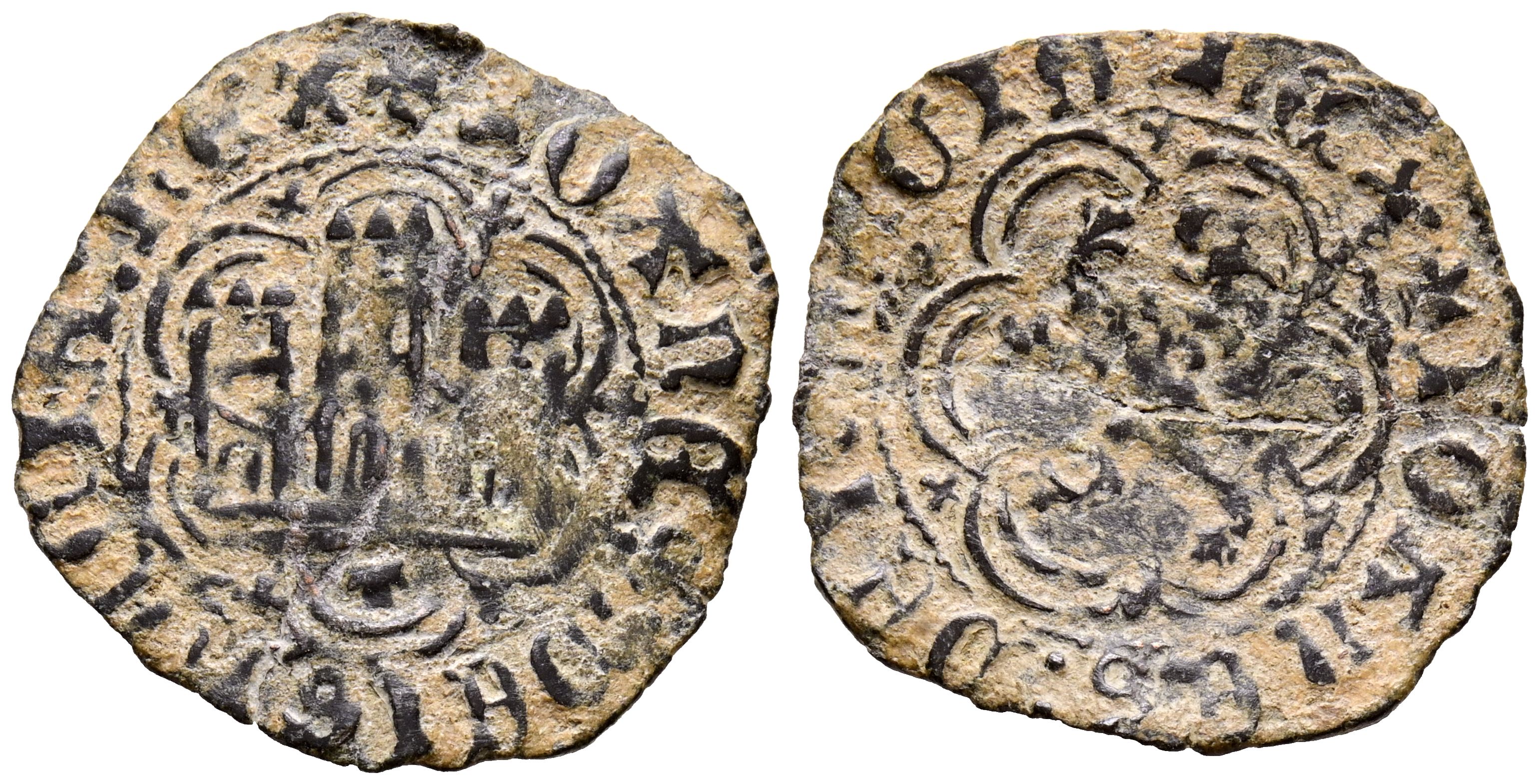 JOHN II (1406-1454). Blanca. (Ae. 1.25g/23mm). Toledo. (Imperatrix j2:1.34; FAB-602). Obv: Castle, below T, within lobed beading, around legend: IOANES DEI GRACIA REX. Rev: Lion rampant left within lobed beading, around legend: IOANES DEI GRACIA REX. VF.