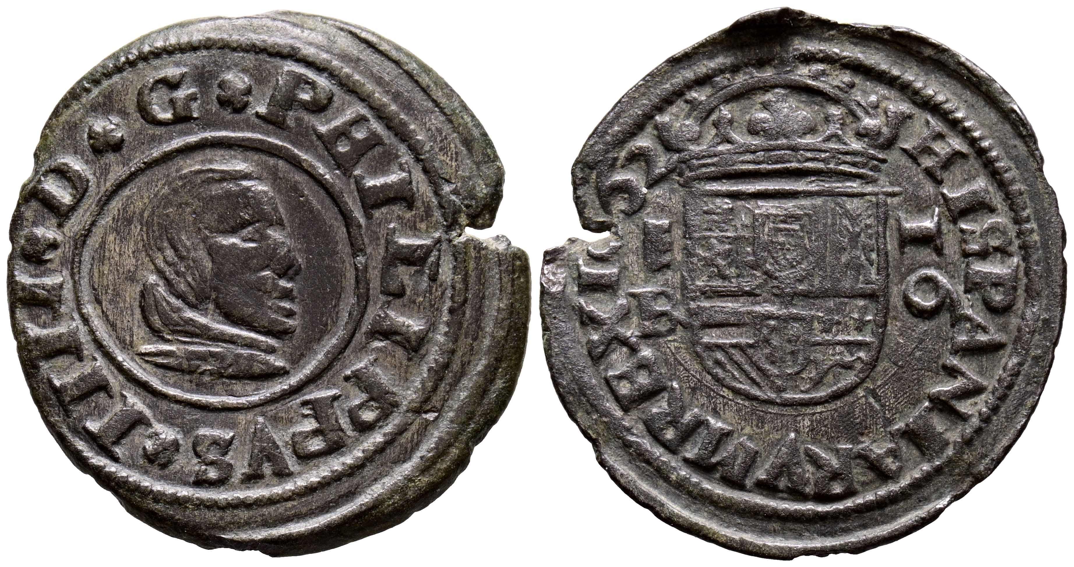 English PHILIP IV (1621-1665). 16 Maravedis. (Ae. 3.87g/26mm). 1662. Segovia B. (Cal-2019-488). Good Very Fine.