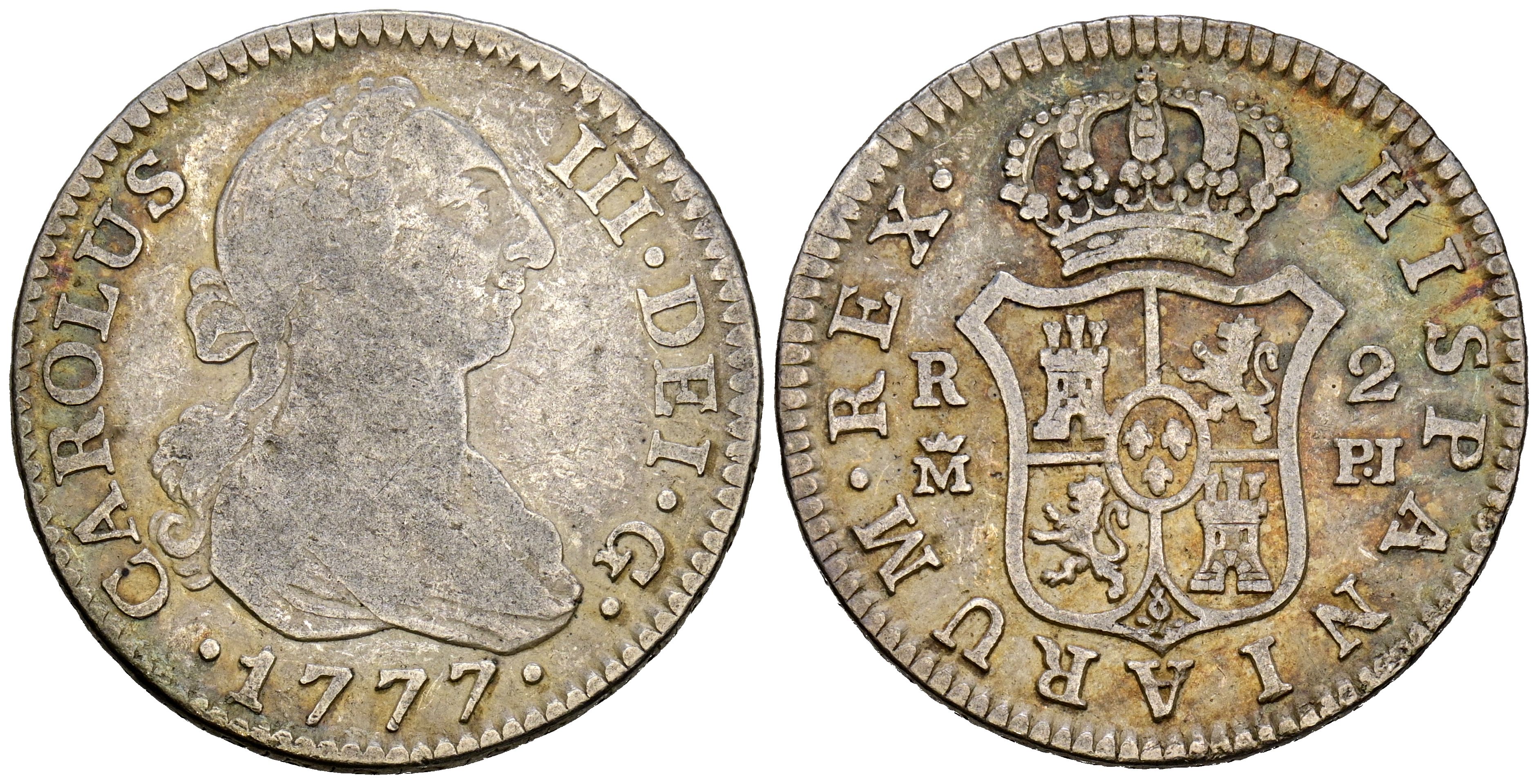 CHARLES III (1759-1788). 2 Reales. (Ar. 5.70g/27mm). 1777. Madrid PJ. (Cal-2019-626). Very Fine-.