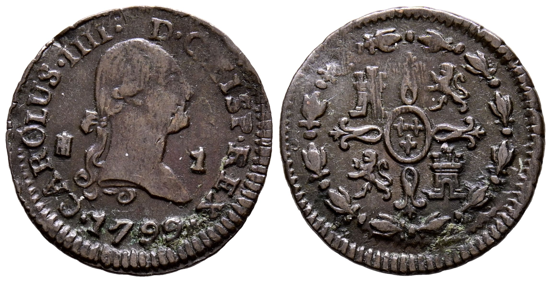 CHARLES IV (1788-1808). 1 Maravedi. (Ae. 1.00g/16mm). 1799. Segovia. (Cal-2019-22). Very Fine-.