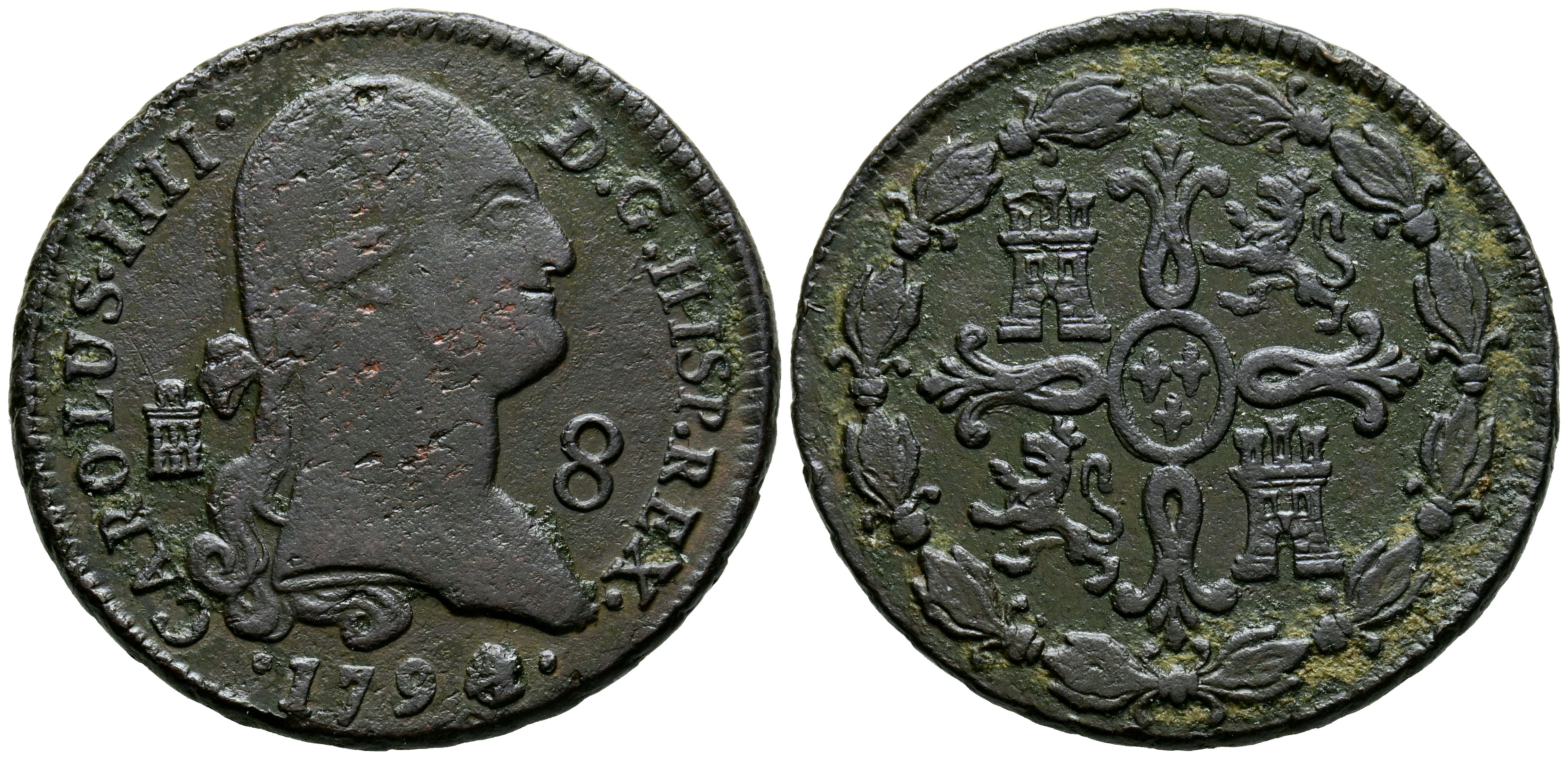 CHARLES IV (1788-1808). 8 Maravedis. (Ae. 11.61g/31mm). 1794/2. Segovia. (Cal-2019-70). Very Fine-.