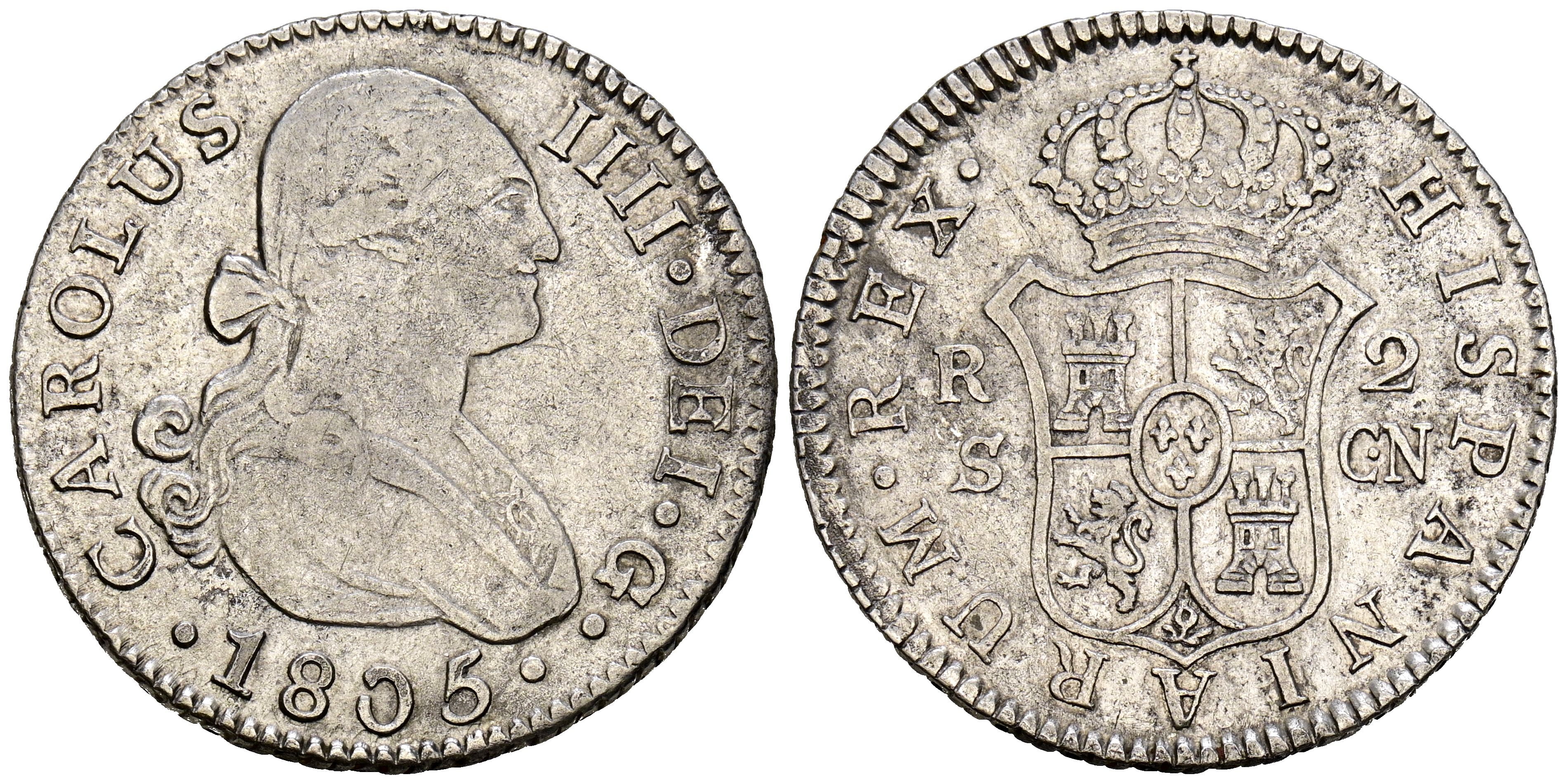 CHARLES IV (1788-1808). 2 Reales. (Ar. 5.84g/26mm). 1805. Seville CN. (Cal. 2019-725). VF+. Slight traces of original luster.
