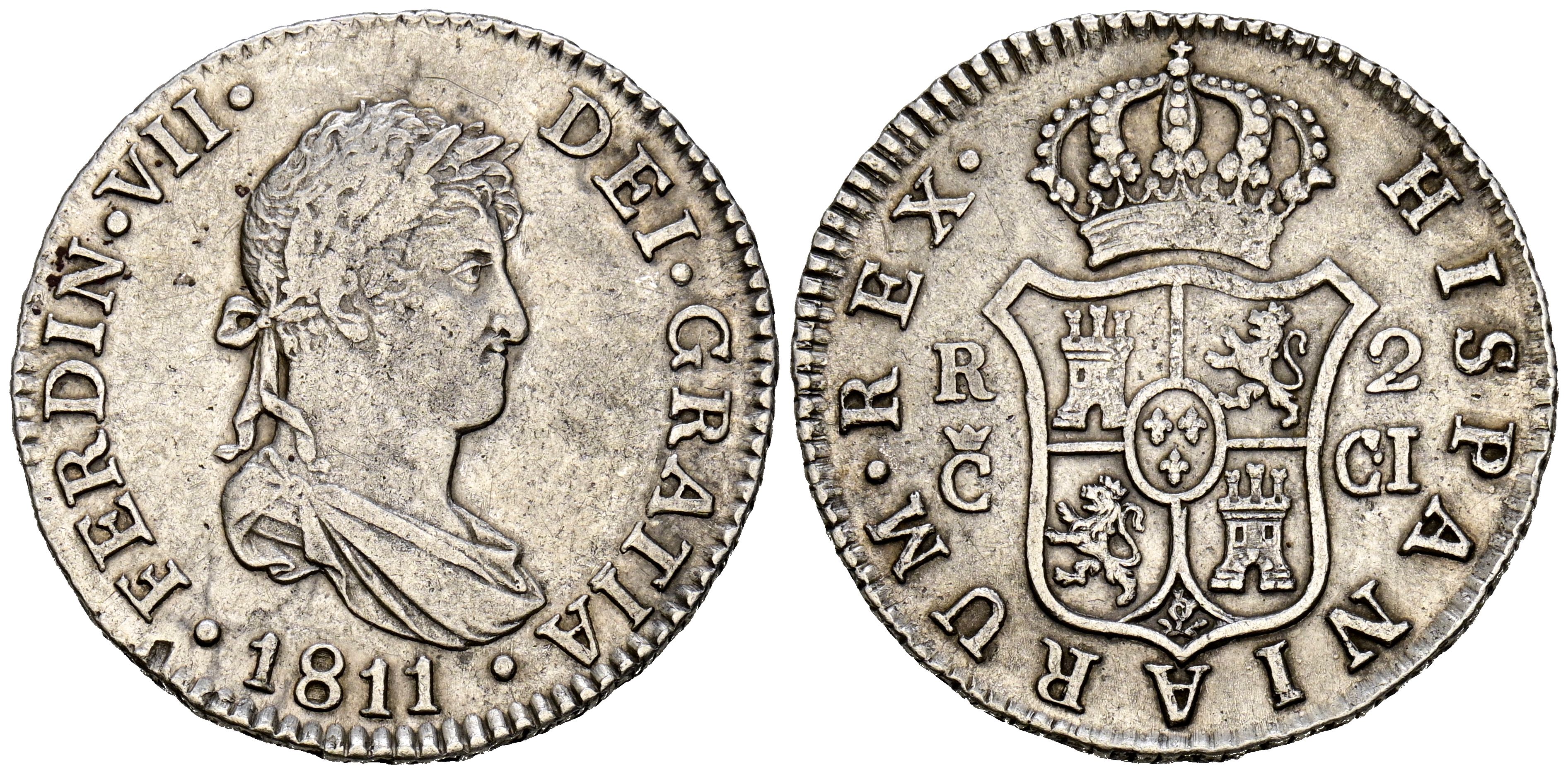 English FERDINAND VII (1808-1833). 2 Reales. (Ar. 5.82g/26mm). 1811. Cadiz CI. (Cal-2019-726). Good Very Fine.