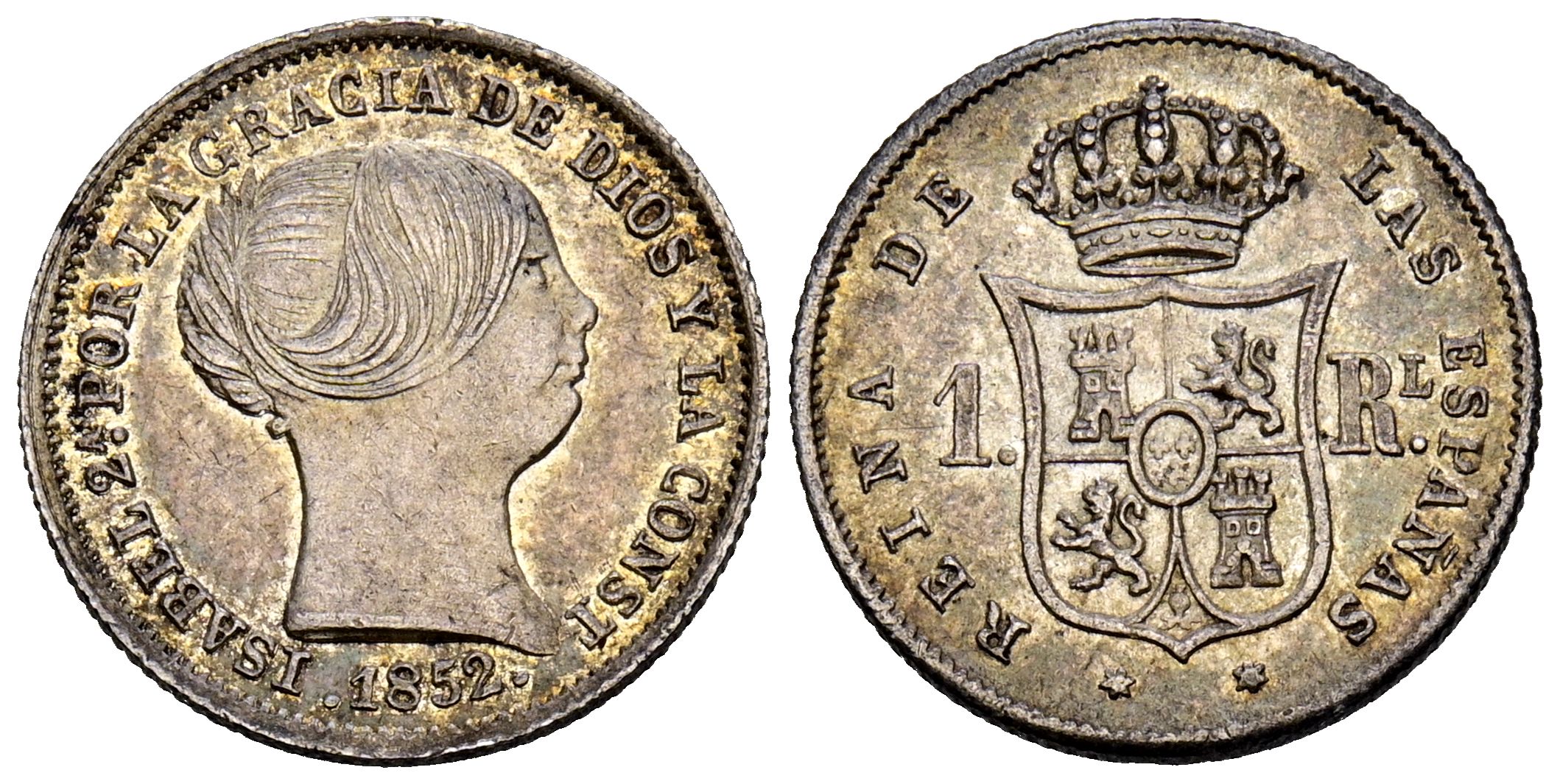 Isabel II (1833-1868). 1 Real. (Ar. 1.18g/15mm). 1852. Madrid. (Cal. 2019-302). Extremely Fine. Traces of original luster. Beautiful patina.