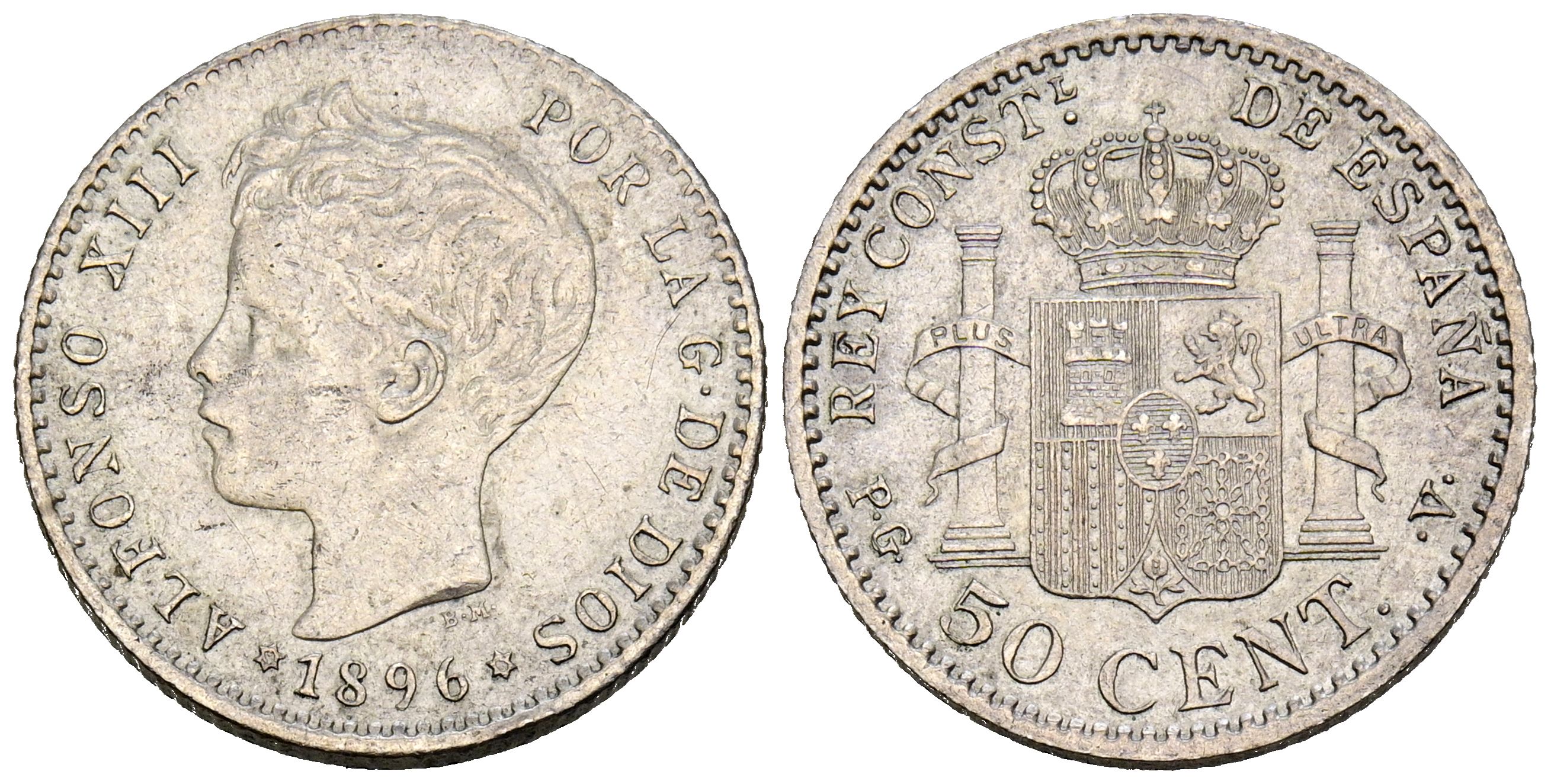 ALFONSO XIII (1885-1931). 50 Cents (Ar. 2.44g/18mm). 1896 *9-6. Madrid PGV. (Cal-2019-44). Good Very Fine/Extremely Fine-.