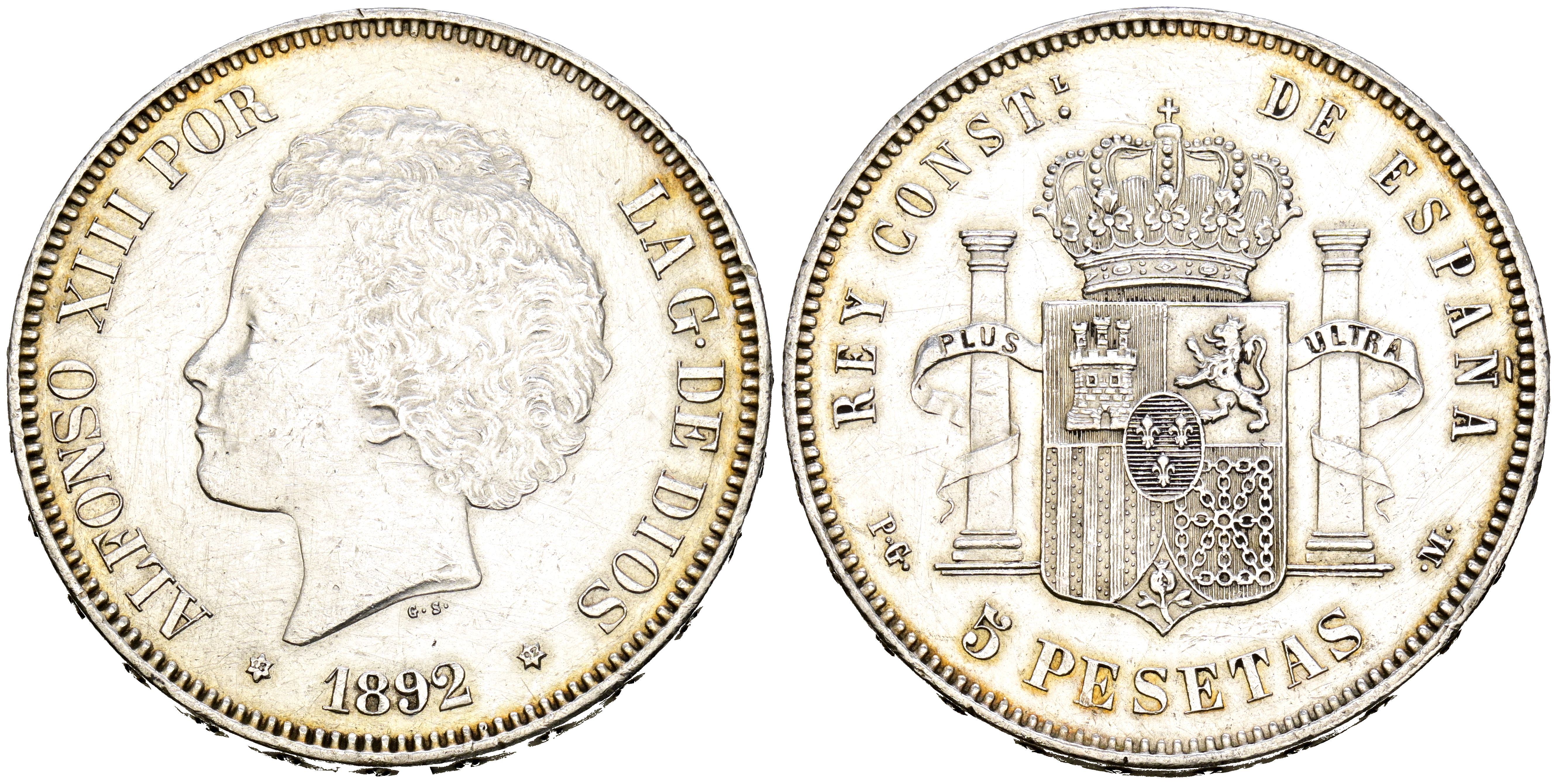 Alfonso XIII (1885-1931). 5 Pesetas. (Ar. 25.03g/37mm). 1892 *18-92. Madrid PGM. (Cal. 2019-100). VF+. Cleaned.
