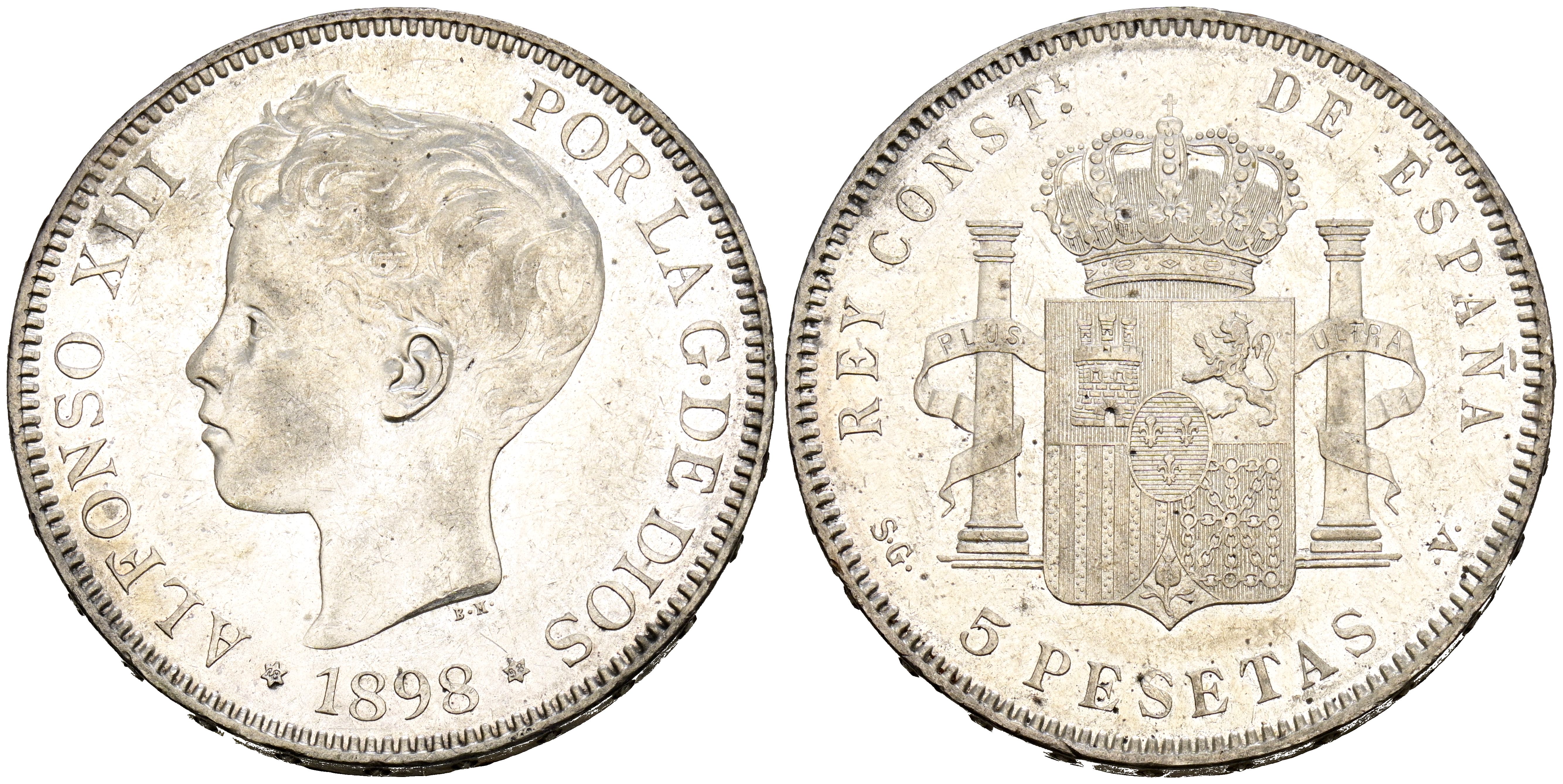 ALFONSO XIII (1885-1931). 5 Pesetas. (Ar. 24.92g/37mm). 1898 *18-98. Madrid SGV. (Cal-2019-109). Extremely Fine-. Marks.