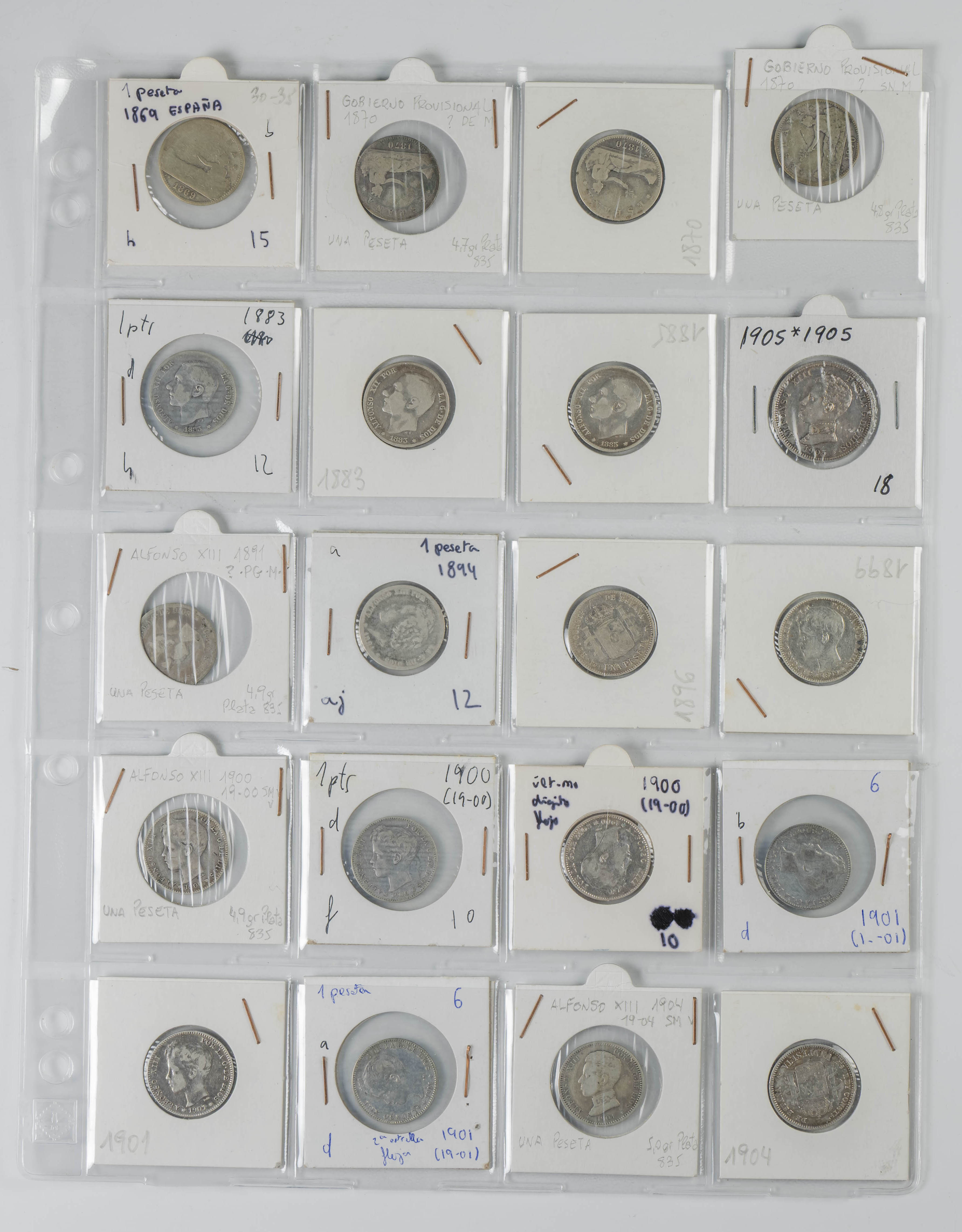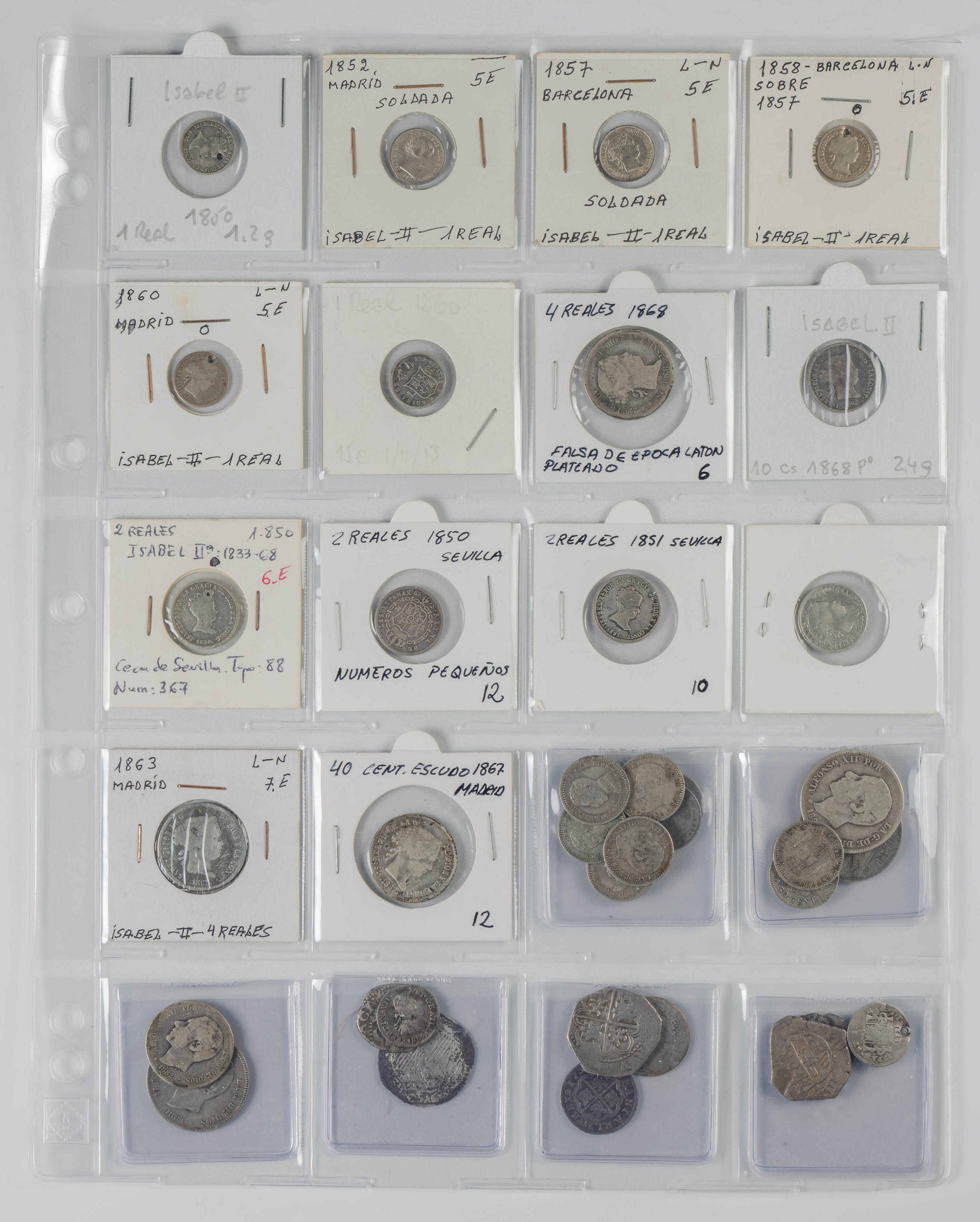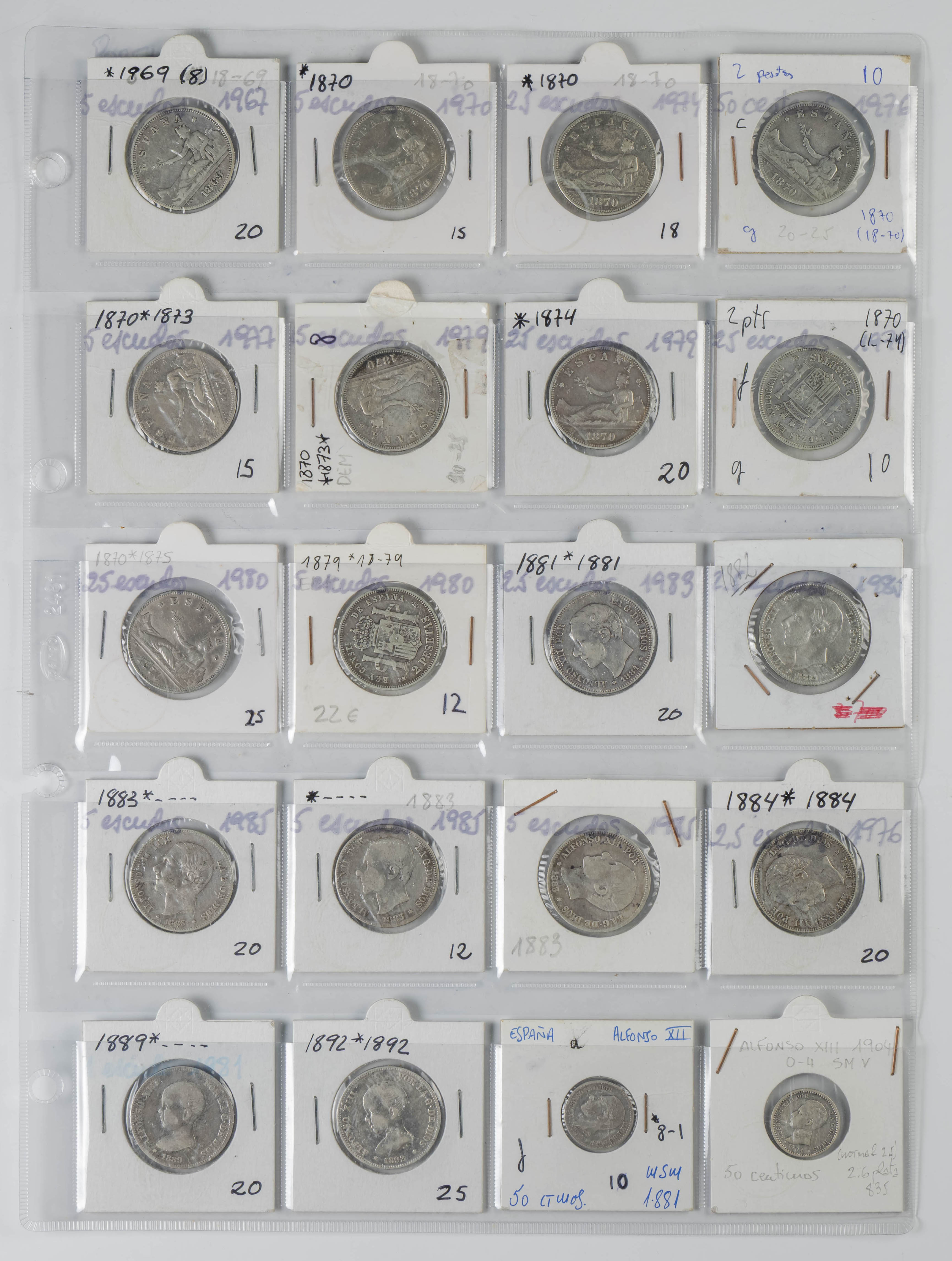 A collection of more than 260 silver coins, primarily from the Centenary of the Peseta, although we also find pieces from the Spanish Monarchy, the Spanish State, and contemporary coins. A wide variety of types and denominations, with a significant presence of pieces with the Duro type (approximately 80). Various states of preservation. FOR EXAMINATION.