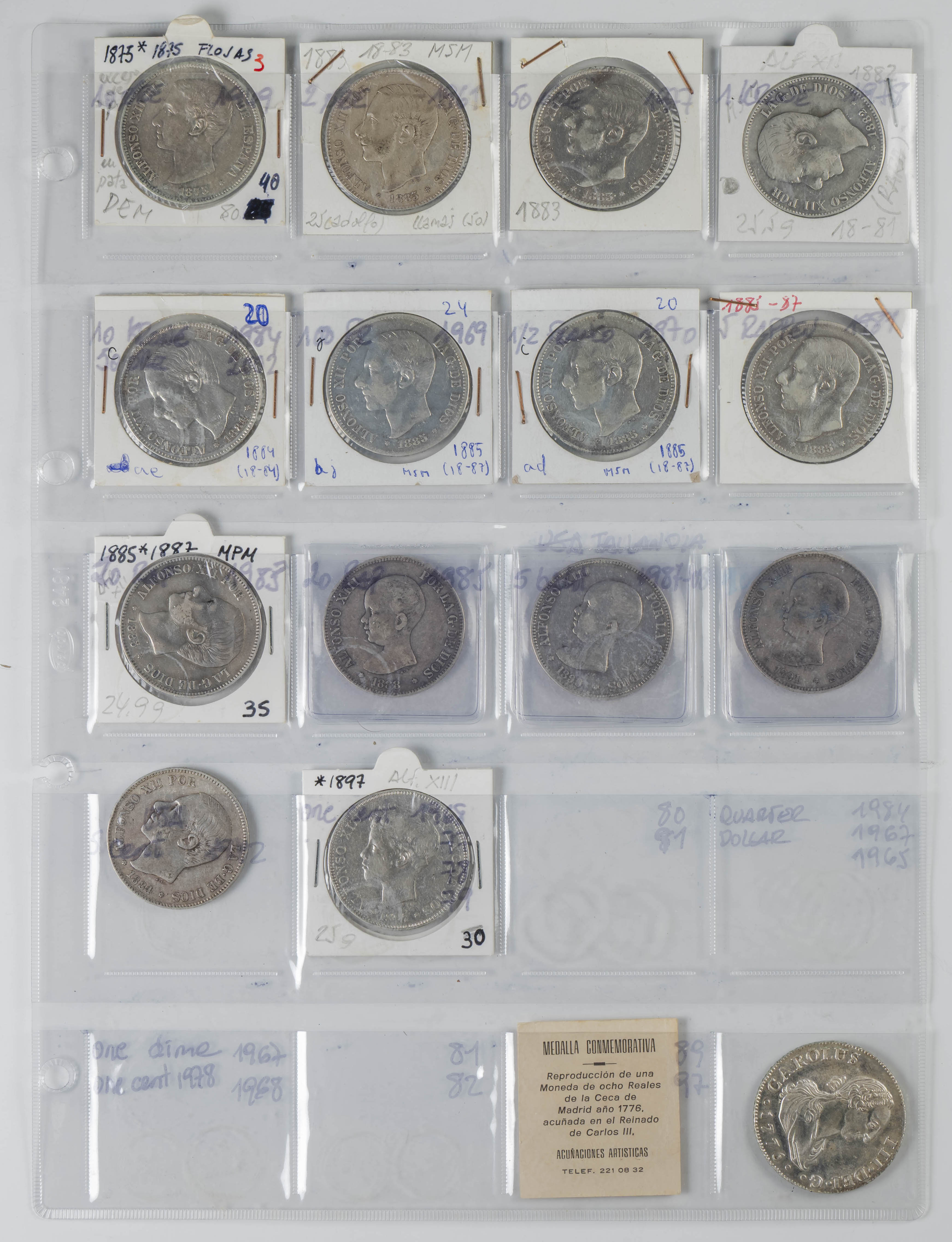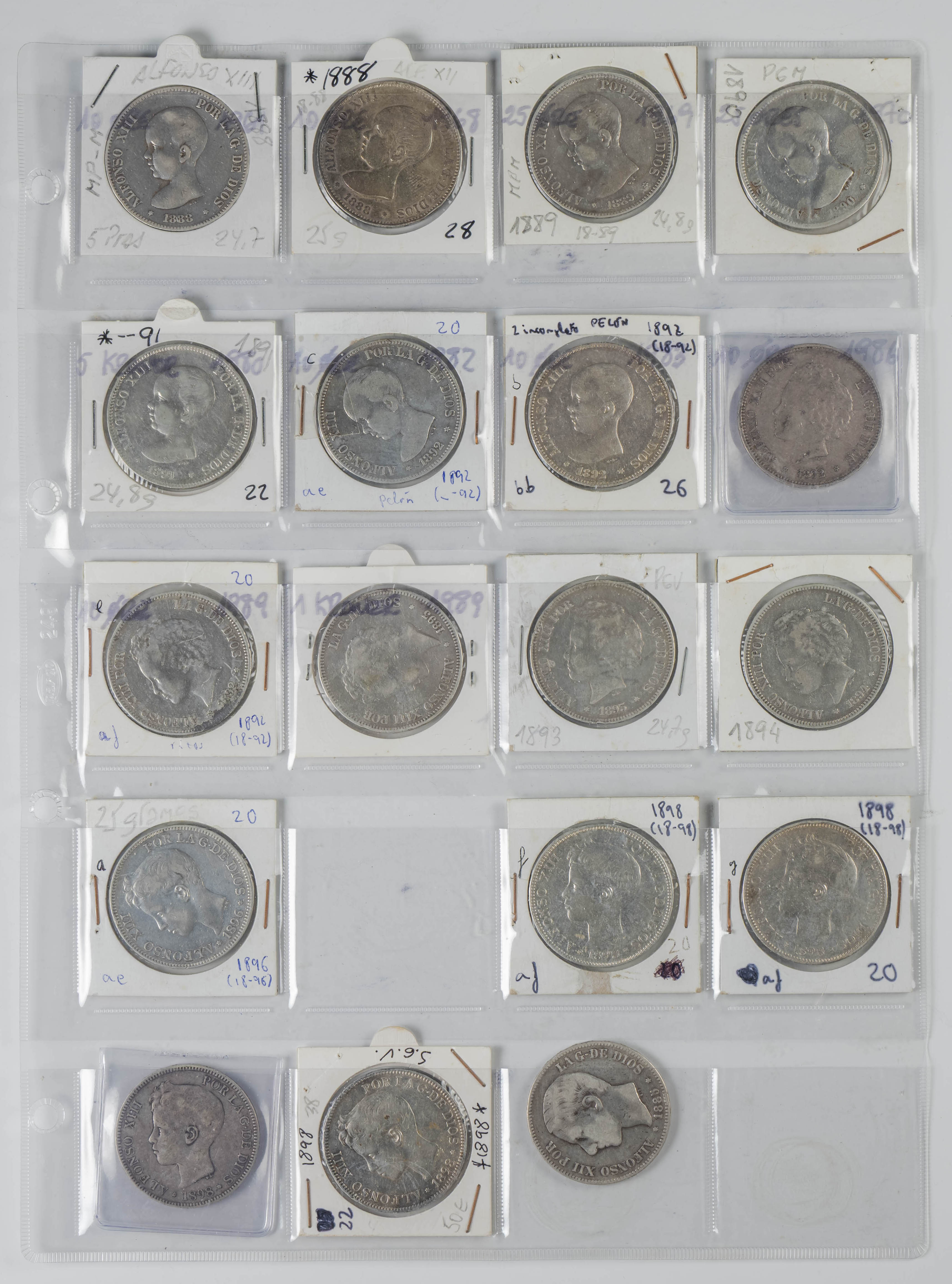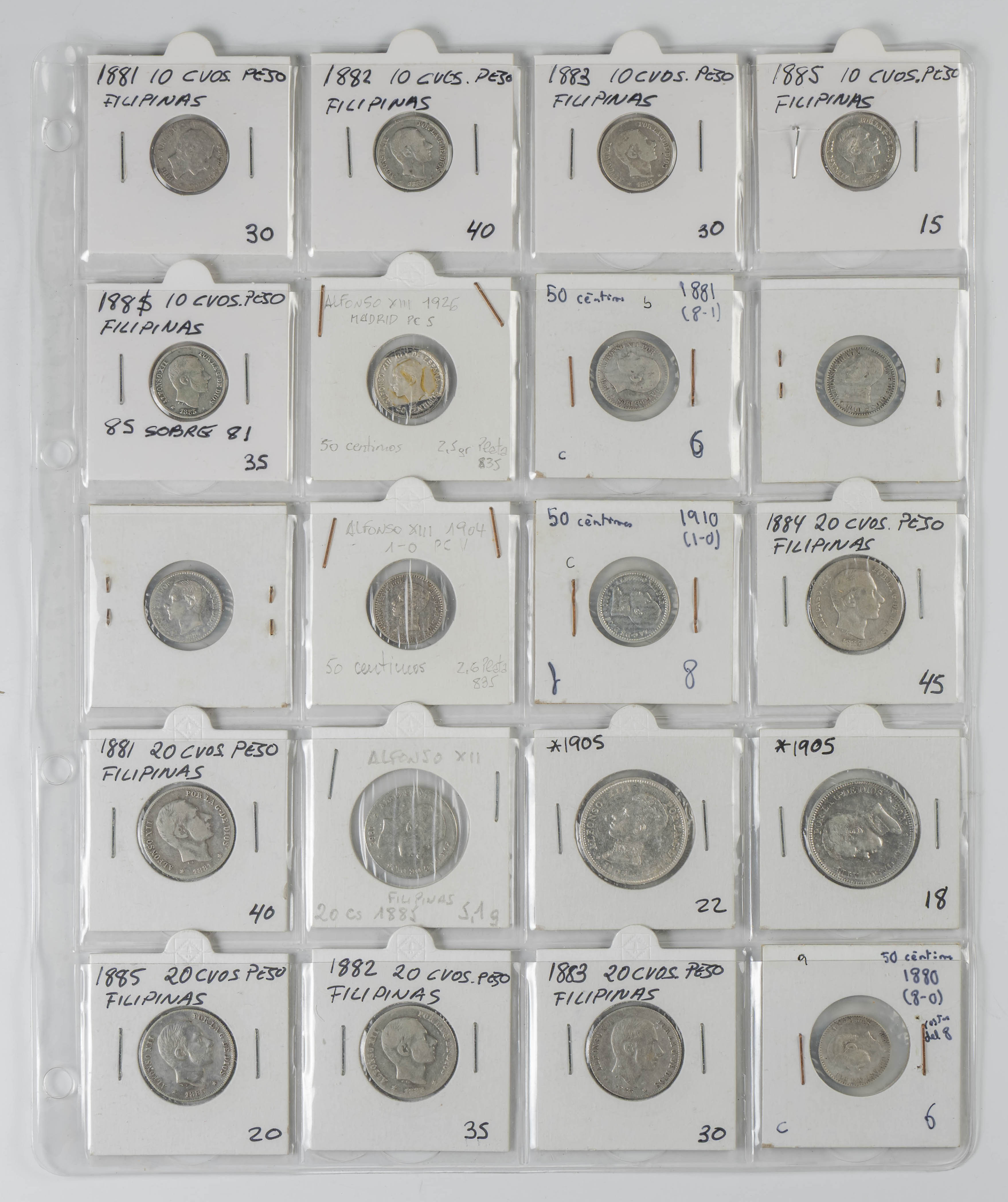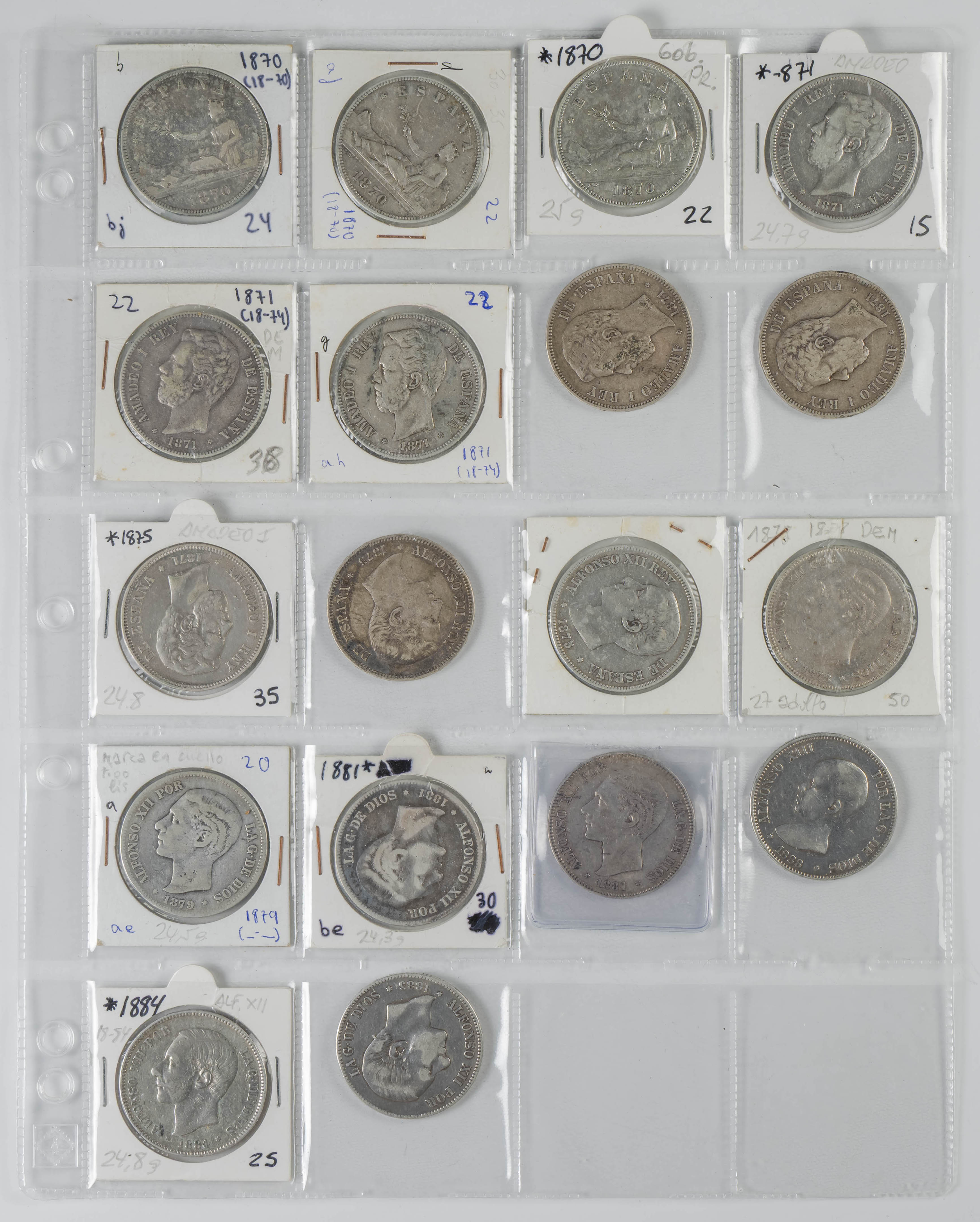 A collection of more than 260 silver coins, primarily from the Centenary of the Peseta, although we also find pieces from the Spanish Monarchy, the Spanish State, and contemporary coins. A wide variety of types and denominations, with a significant presence of pieces with the Duro type (approximately 80). Various states of preservation. FOR EXAMINATION.