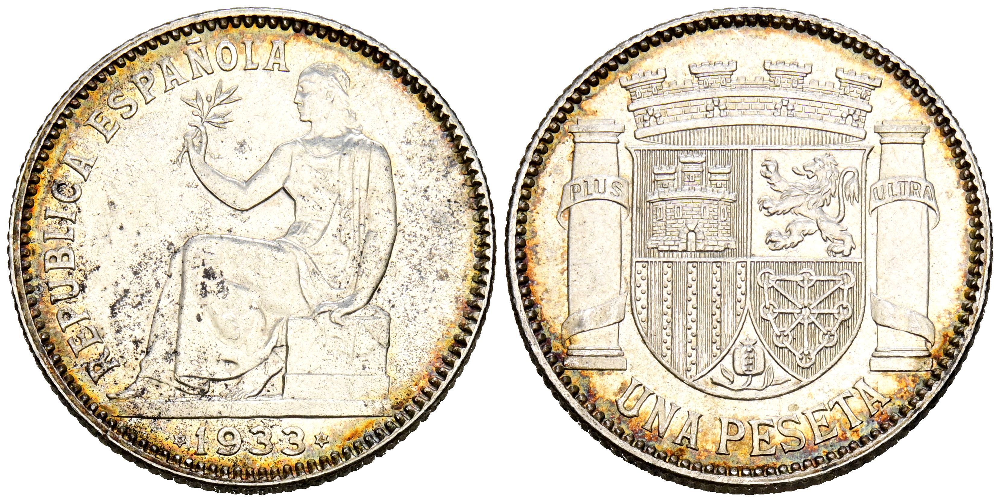 II REPUBLIC (1931-1939). 1 Peseta. (Ar. 4.98g/23mm). 1933 *3-4. Madrid. (Cal-2019-34). Extremely Fine.