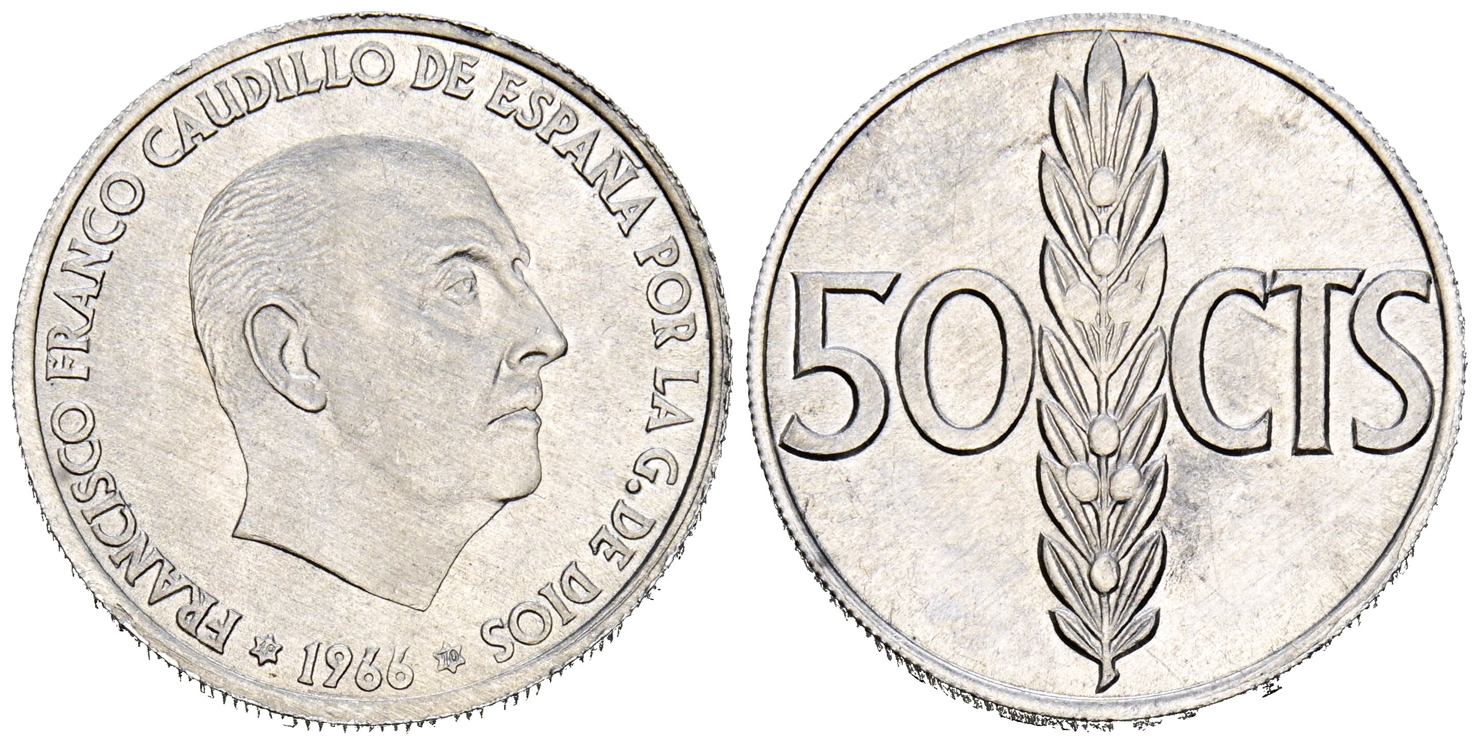 SPANISH STATE (1936-1975). 50 Cents. (H. 0.99g/20mm). 1966 *19-70. Madrid. (Cal. 2019-34). Uncirculated-.