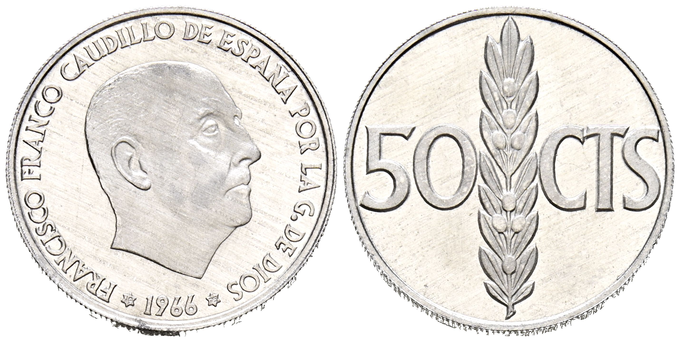 SPANISH STATE (1936-1975) 50 Cents (H. 0.97g/20mm). 1966 *19-75. Madrid. (Cal. 2019-39). UNC.