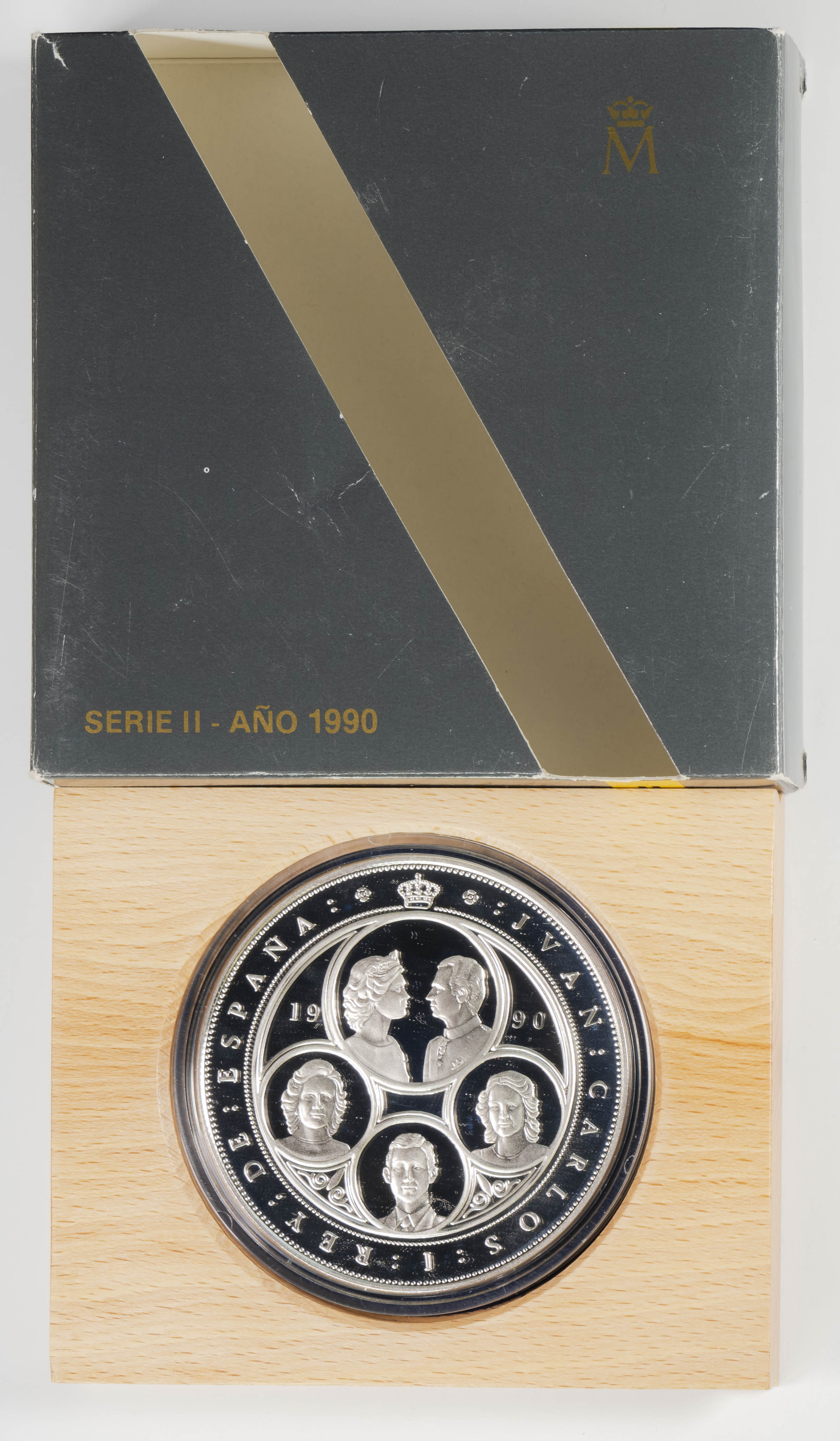 English JUAN CARLOS I (1975-2014). 10,000 Pesetas. (Ar. 168.75g/73mm). Series II. Fifth Centenary. 1990. FNMT. PROOF. Presented in an official case without a certificate of authenticity.